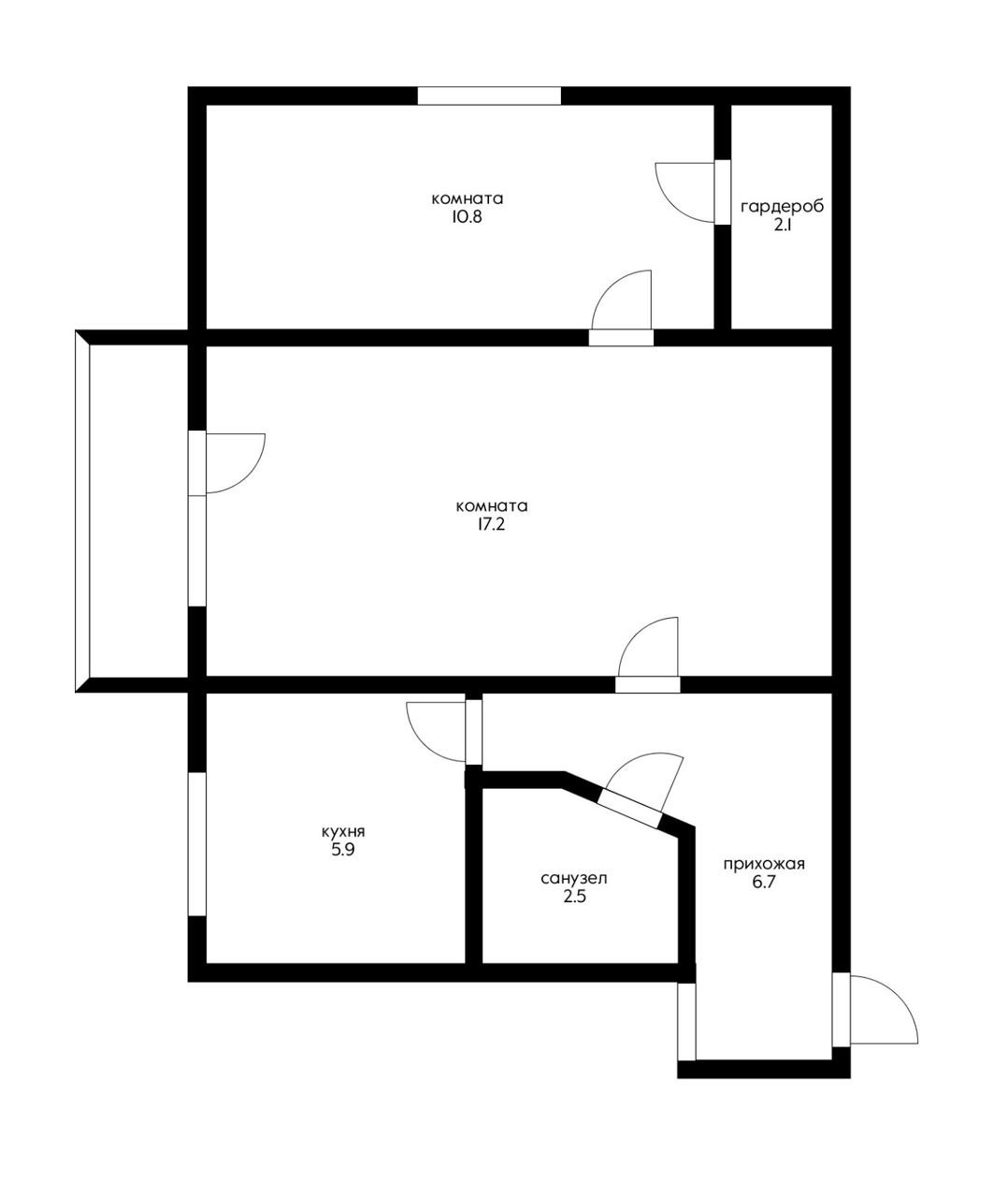 Общая площадь 45.2 м2
