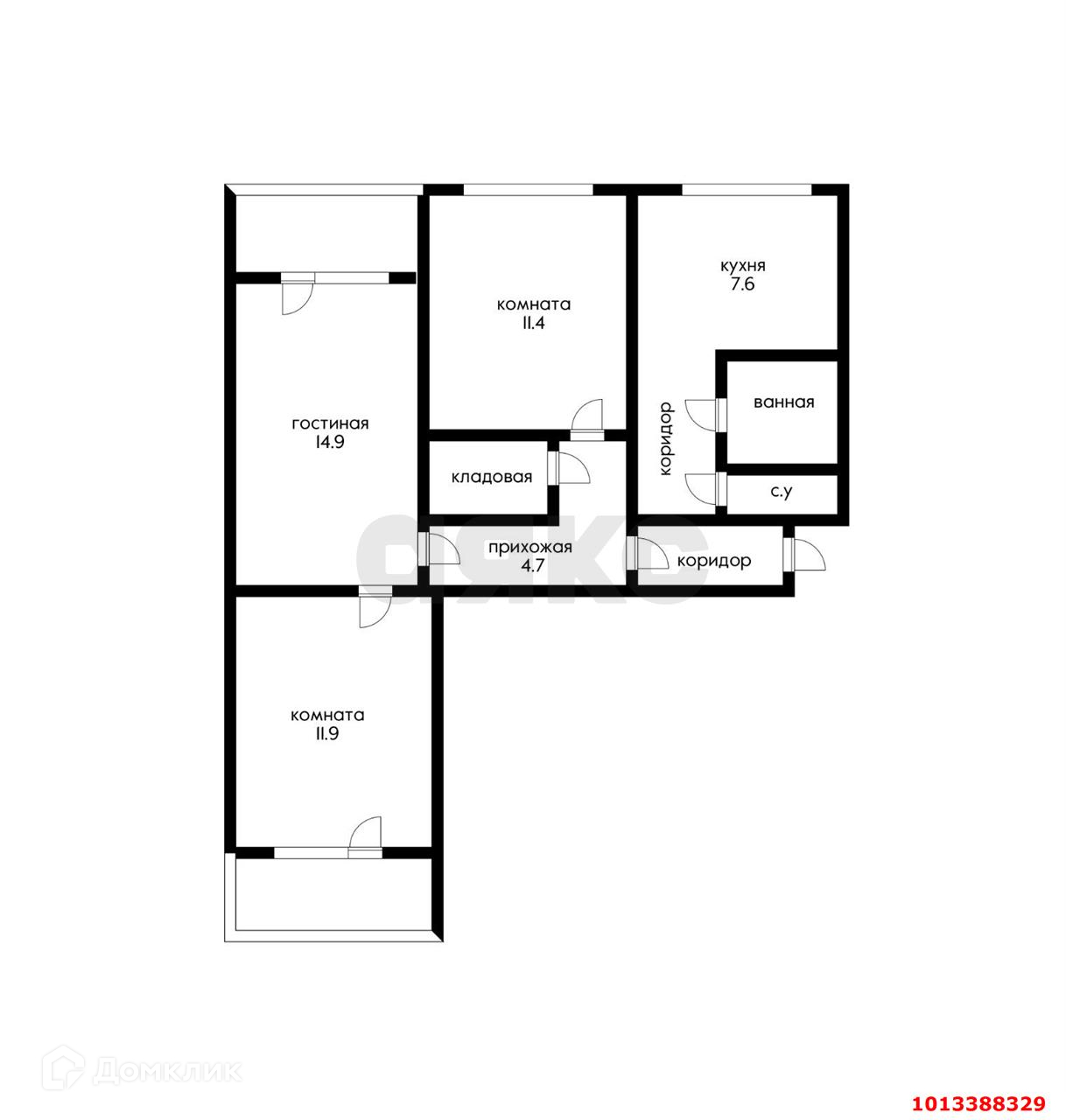 Жилая площадь 38.2 м2
