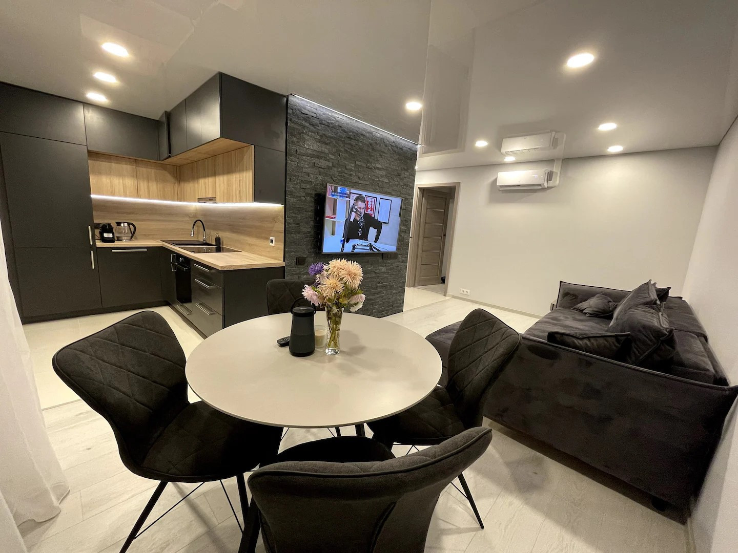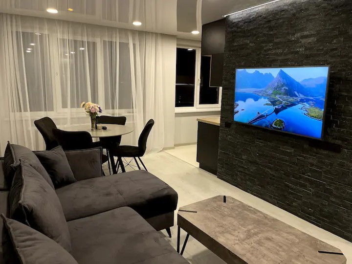 Отличная просторная планировка, вся квартира сделана в одном стиле. Большая, просторная кухня-гостинная со всей необходимой бытовой техникой.