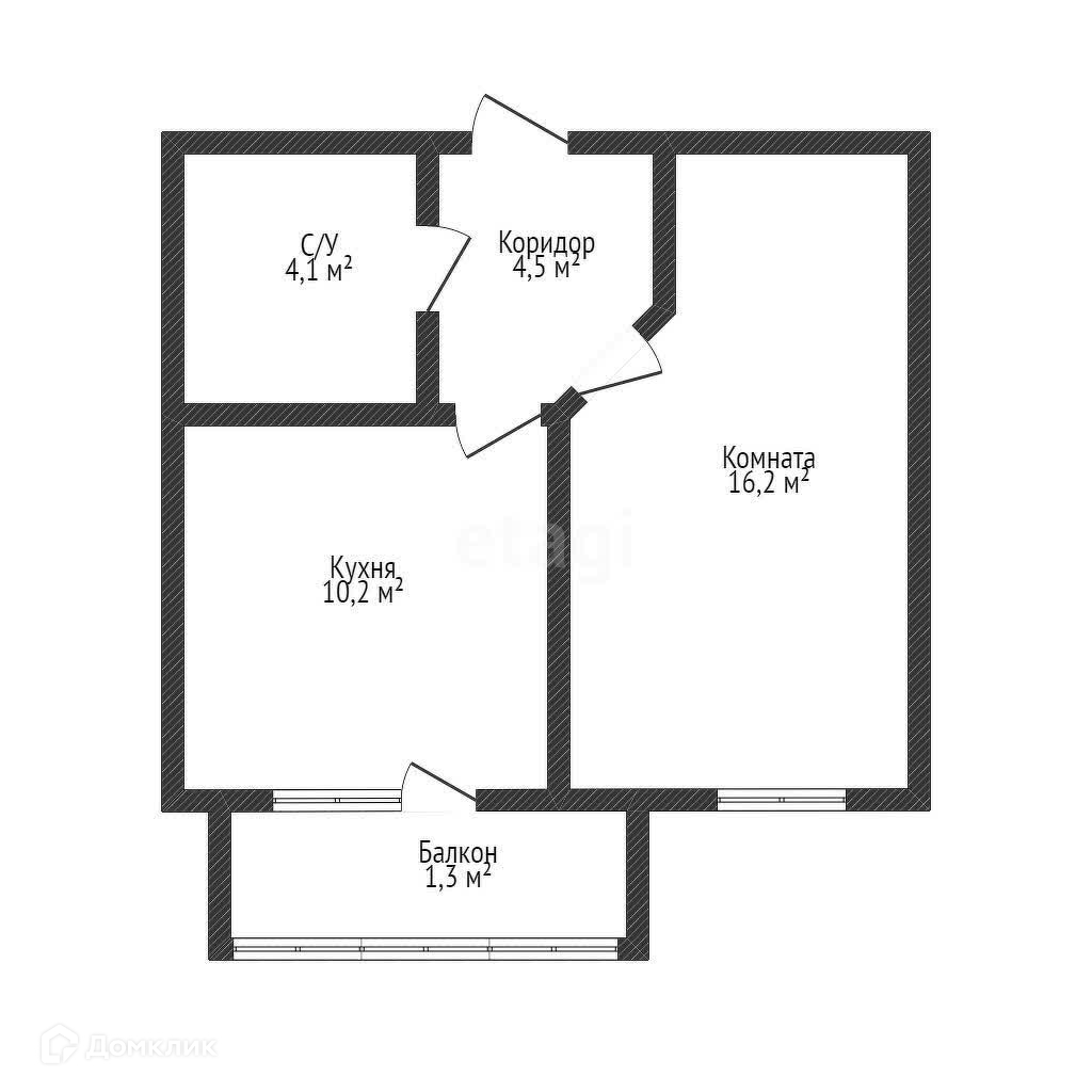 Общая площадь 34.9 м2