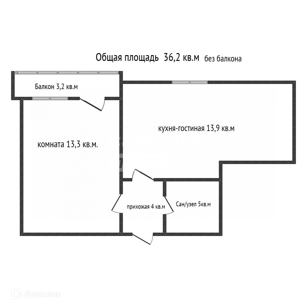 Общая площадь 36.2 м2
