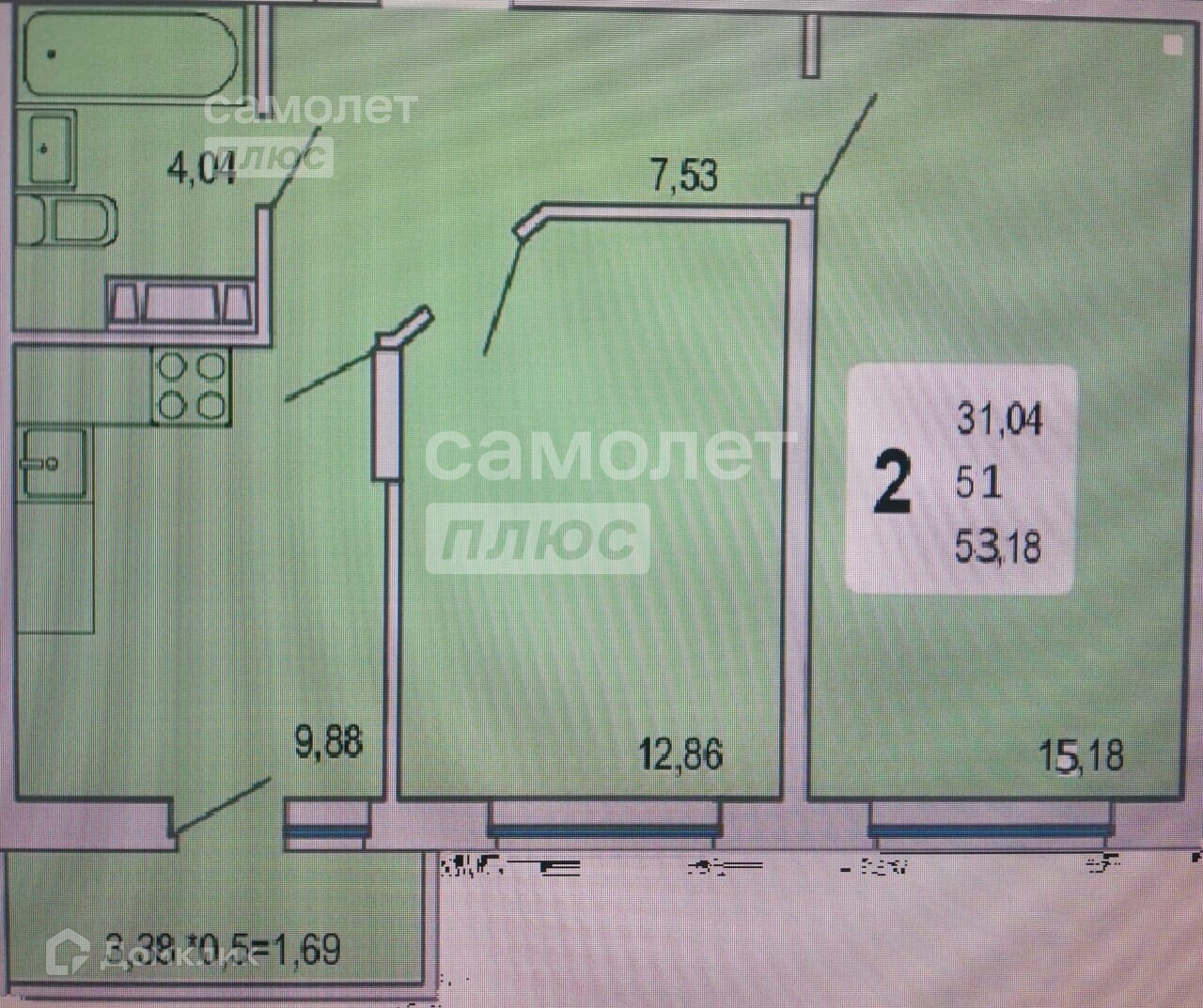 Общая площадь 51 м2