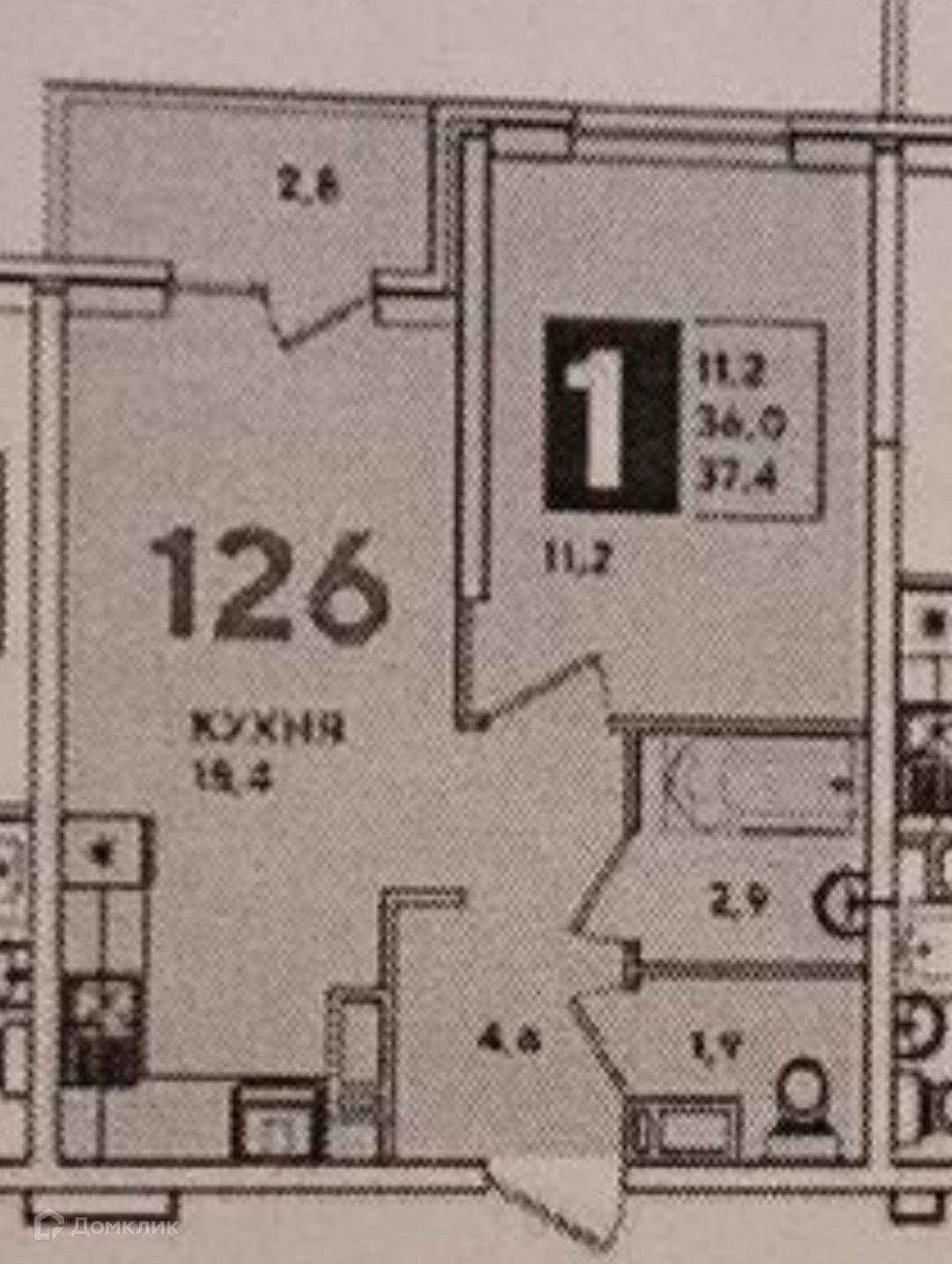 Общая площадь 36 м2