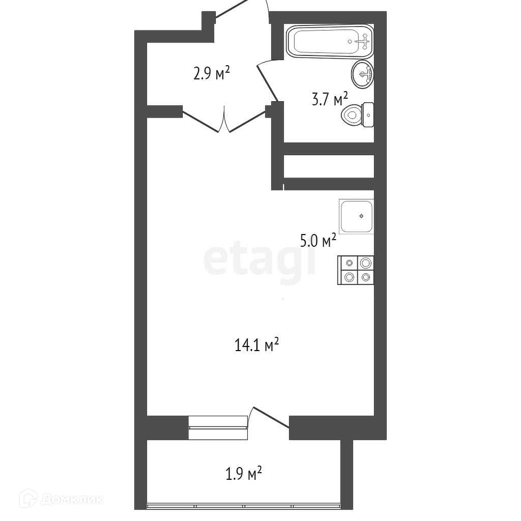 Общая площадь 27.1 м2