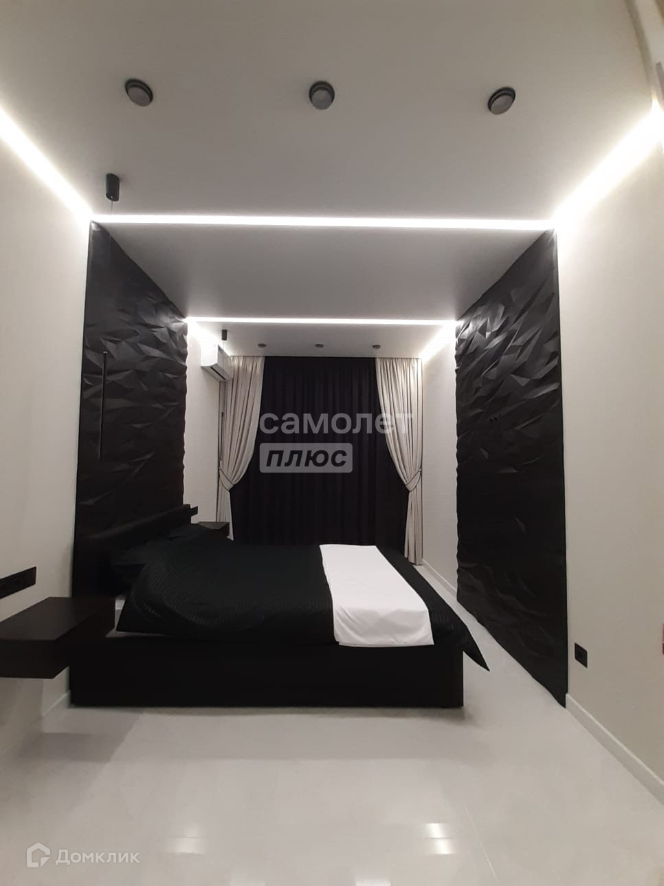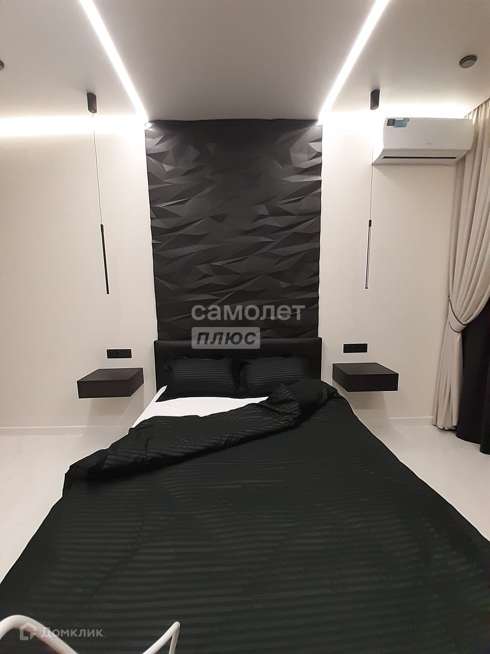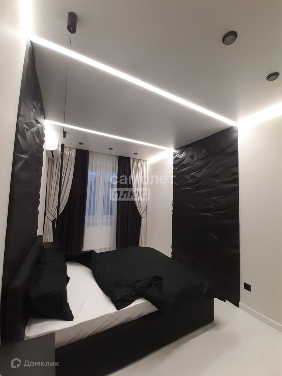 Предусмотрены различные варианты освещения.( точечные светильники , парящий потолок и световые линии , светодиодная подсветка гардеробной и подвесных тумбочек)