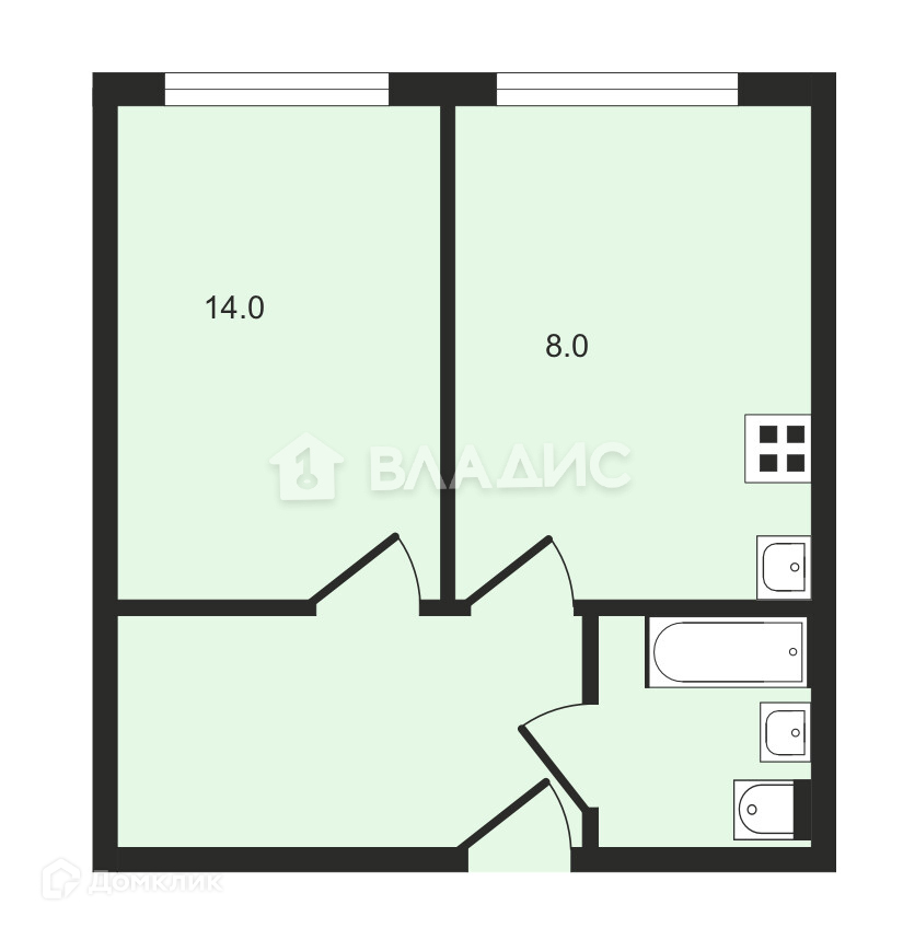 Жилая площадь 14 м2