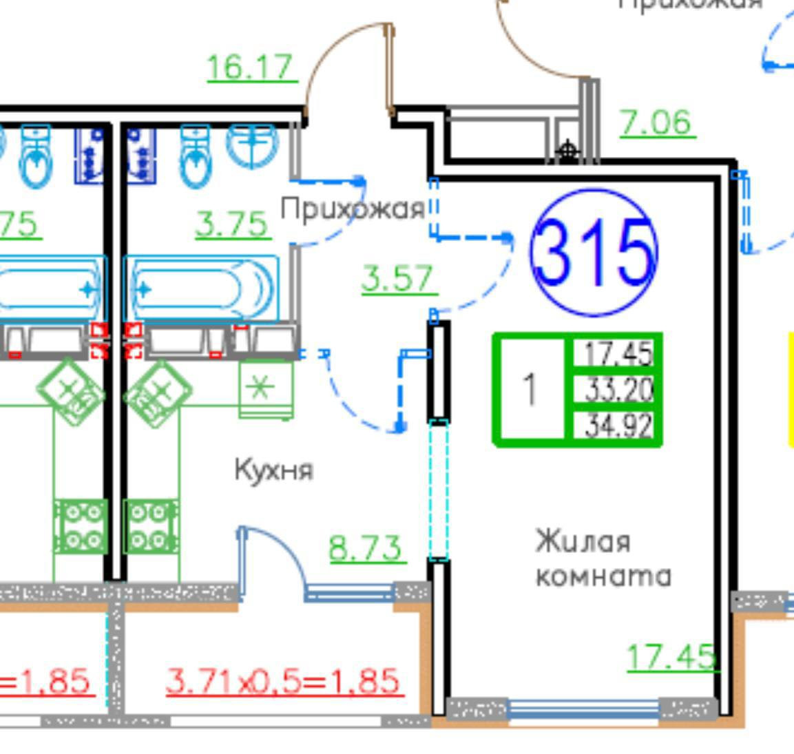 Количество комнат 1