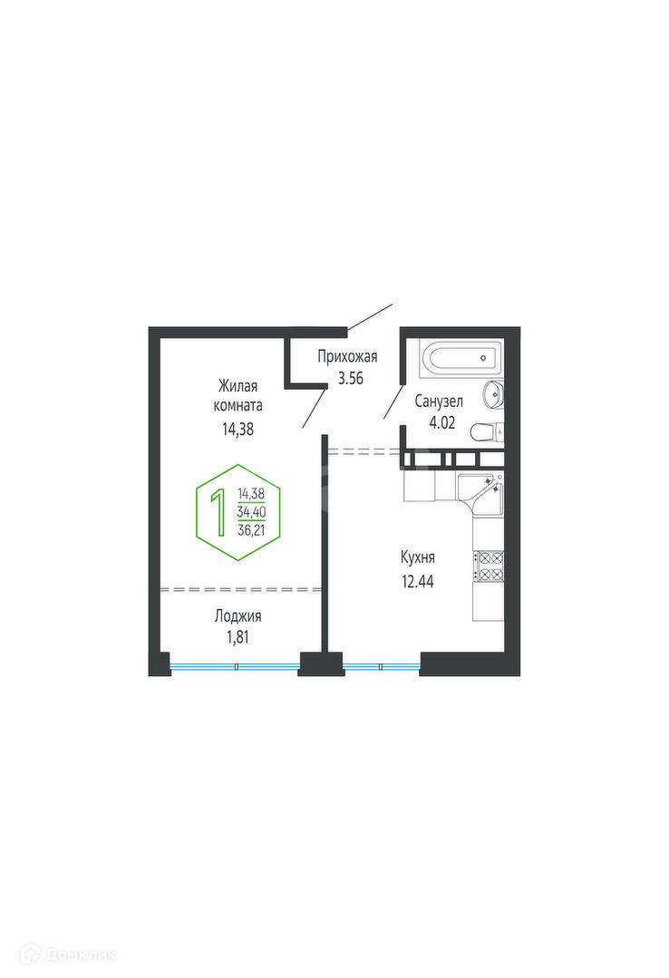 Общая площадь 36.21 м2