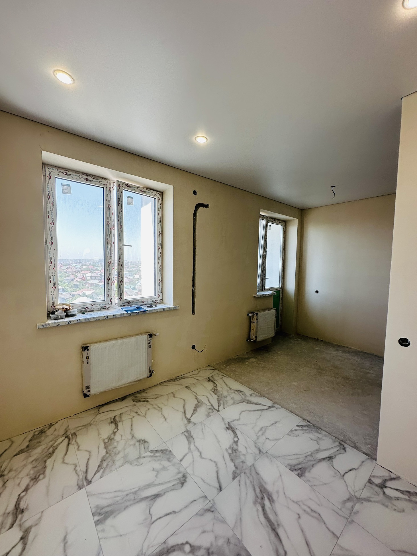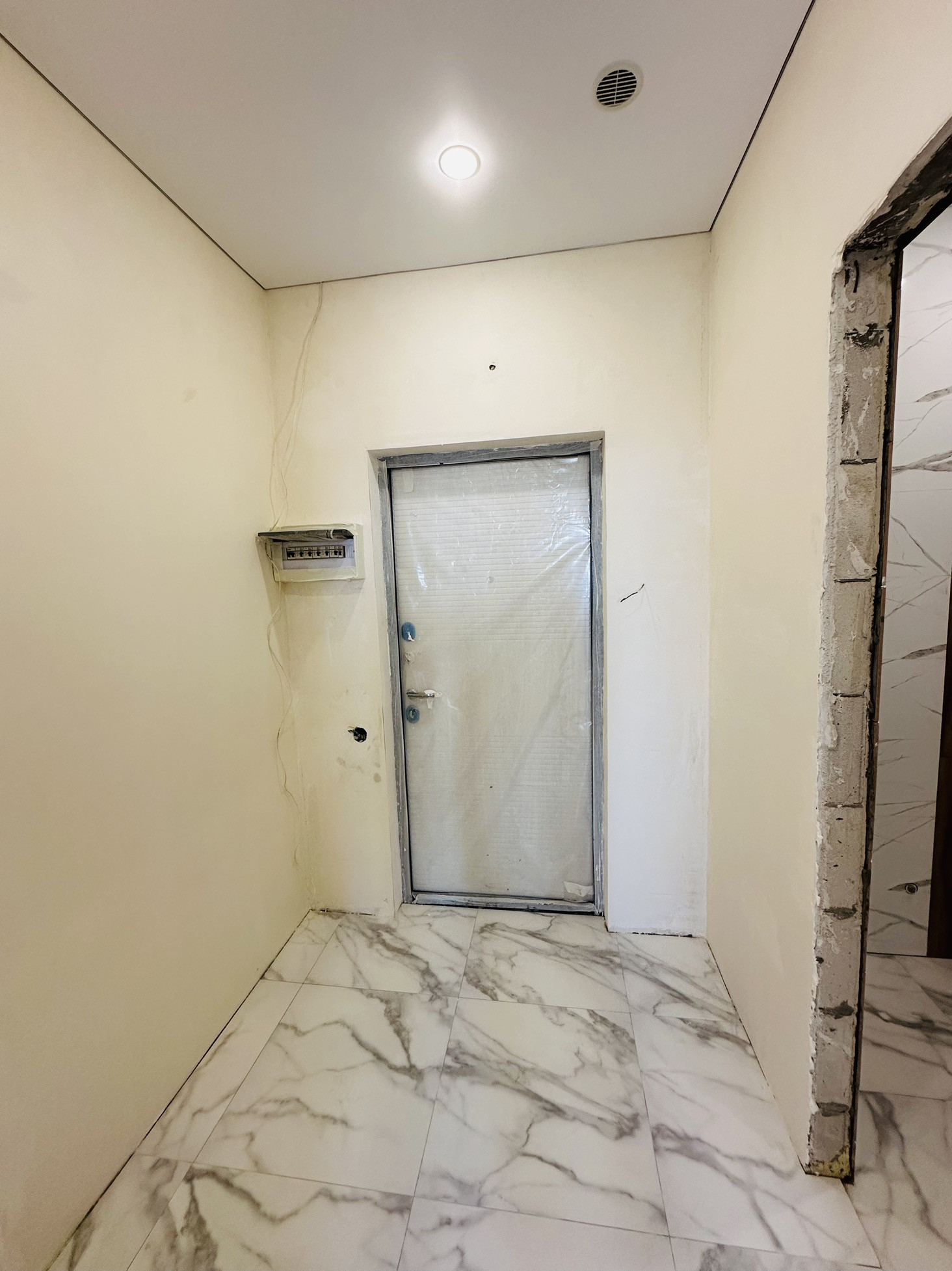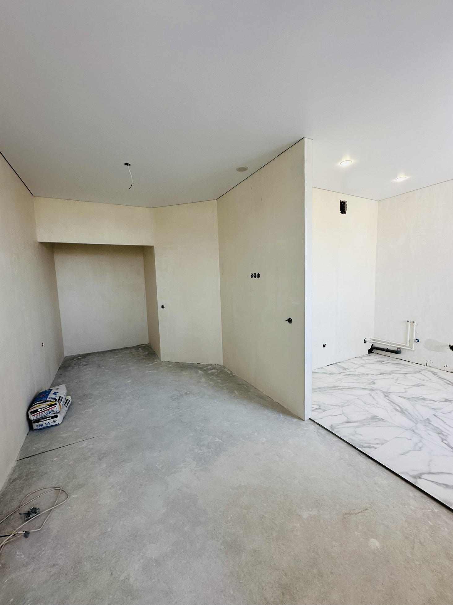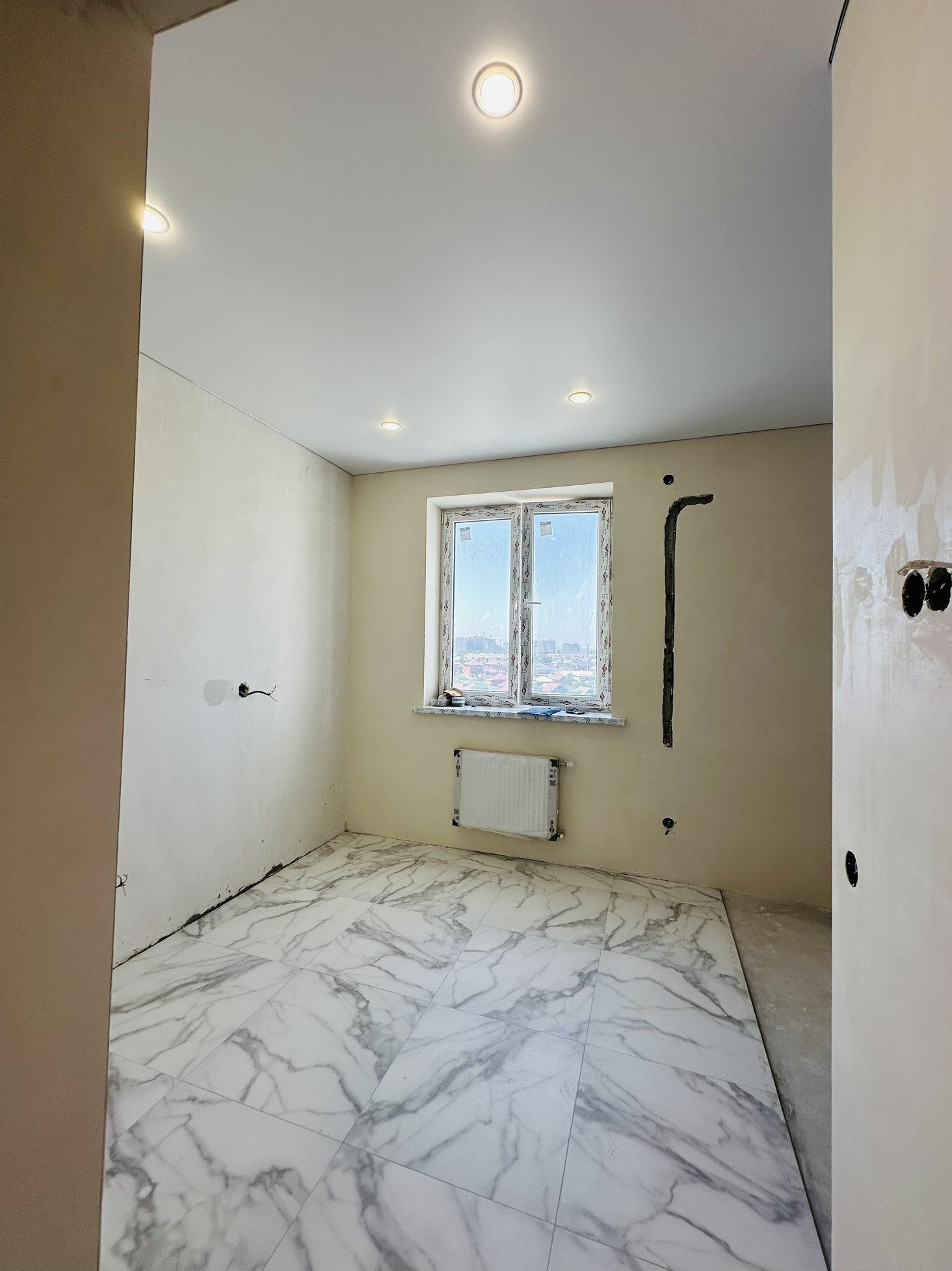Однокомнатная квартира с частичным ремонтом. Сделана плитка в санузле, по в кухне и прихожей, натяжные потолки, светильники, финишная штукатурка.