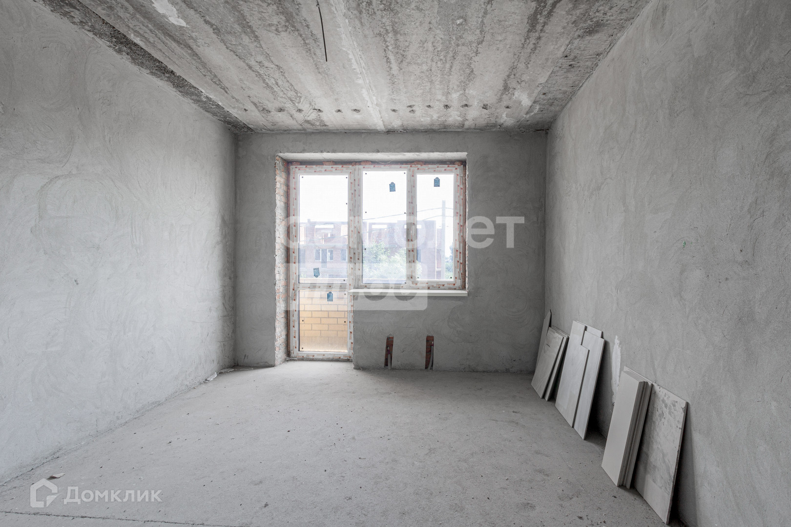 Смежная комната. Предчистовая отделка. Стяжка пола. Отштукатурены стены. Выведены коммуникации.
