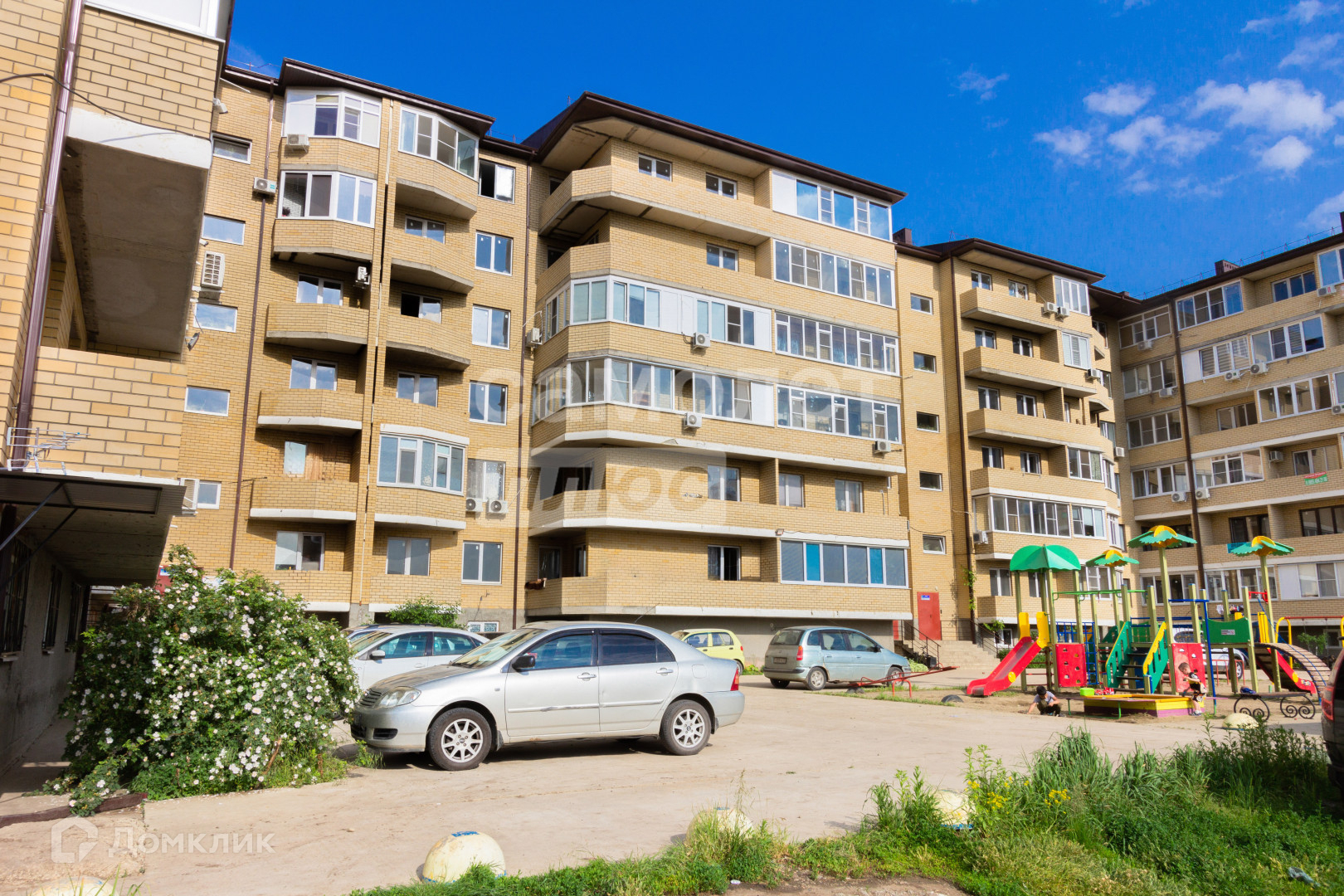 Остановка: пос. Краснодарский. Школа № 17. Двор оборудован детской площадкой. Построился в шаговой доступности большой ТРЦ "Любимово".