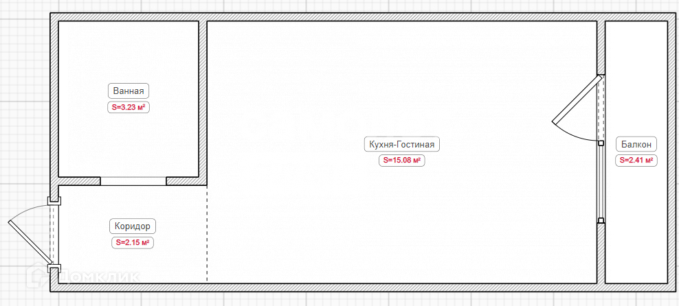 Площадь объекта 20.6м2. Высота потолка 2,8м. Кухня-Гостиная 15м2.