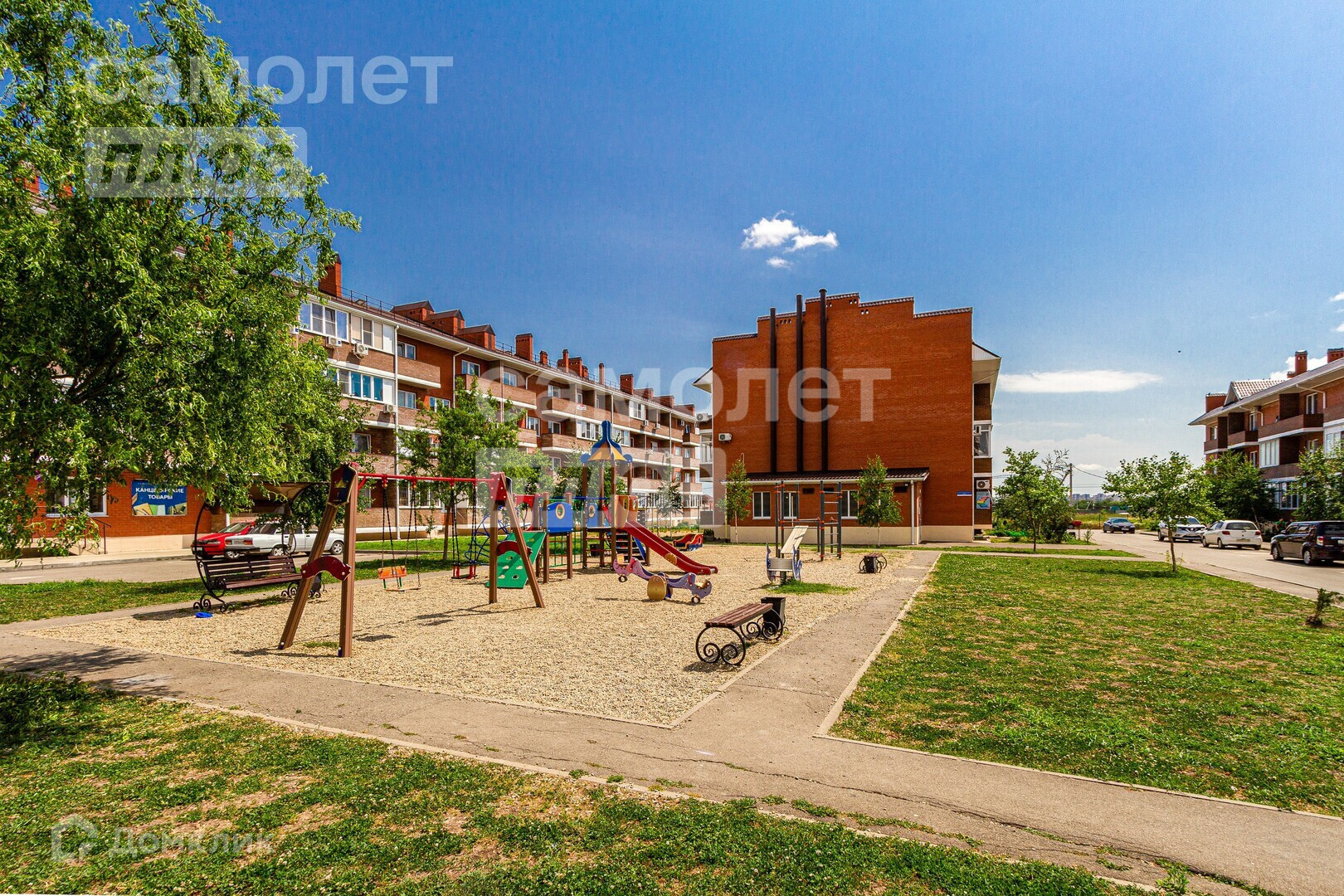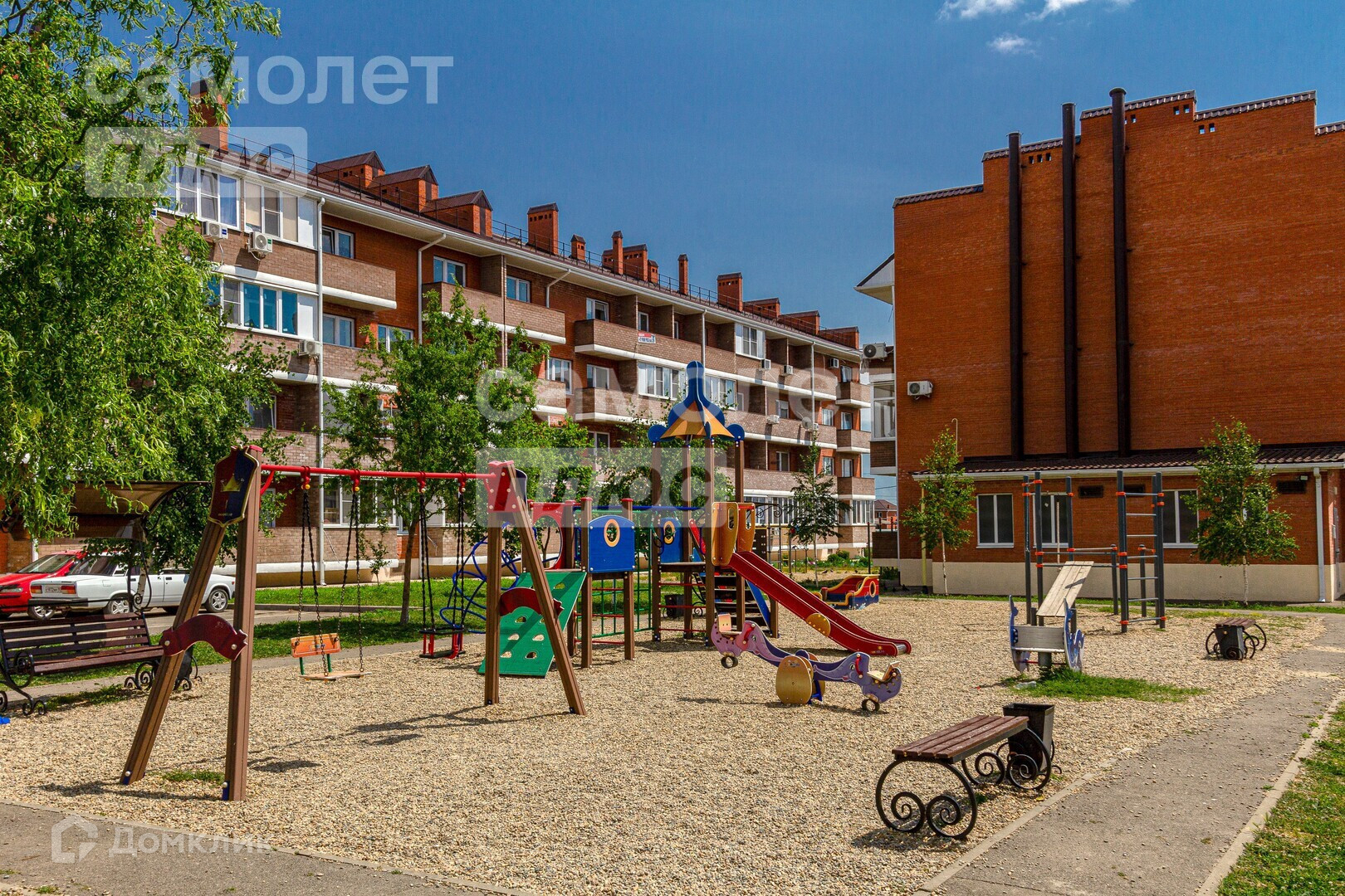 Рядом с домом детская площадка. Озелененная территория.