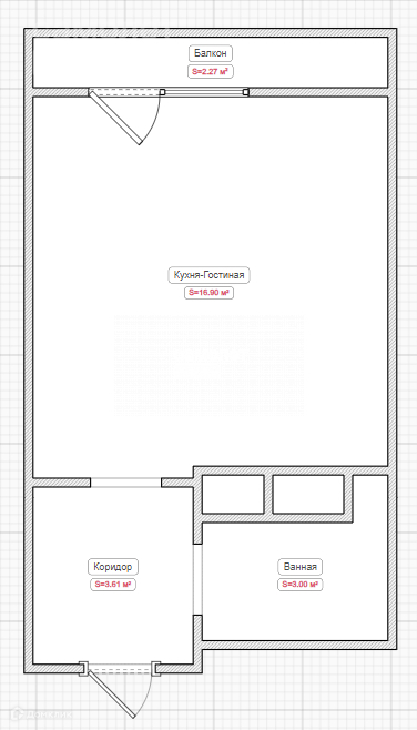 Площадь объекта 24.1м2. Высота потолков 2,8м. Кухня-Гостиная 17м2.