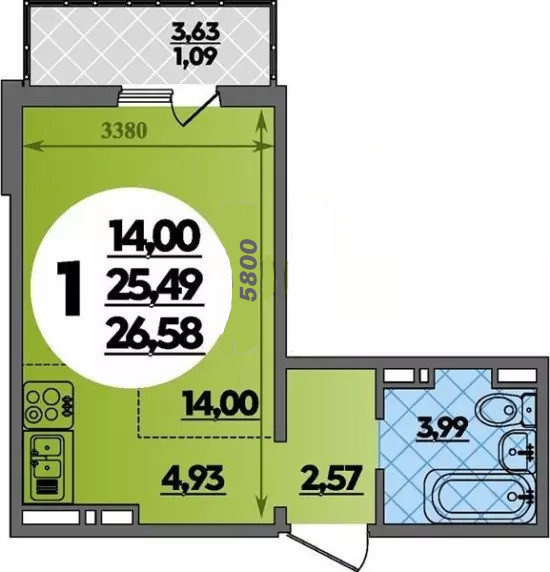 Общая площадь 26.58 м2