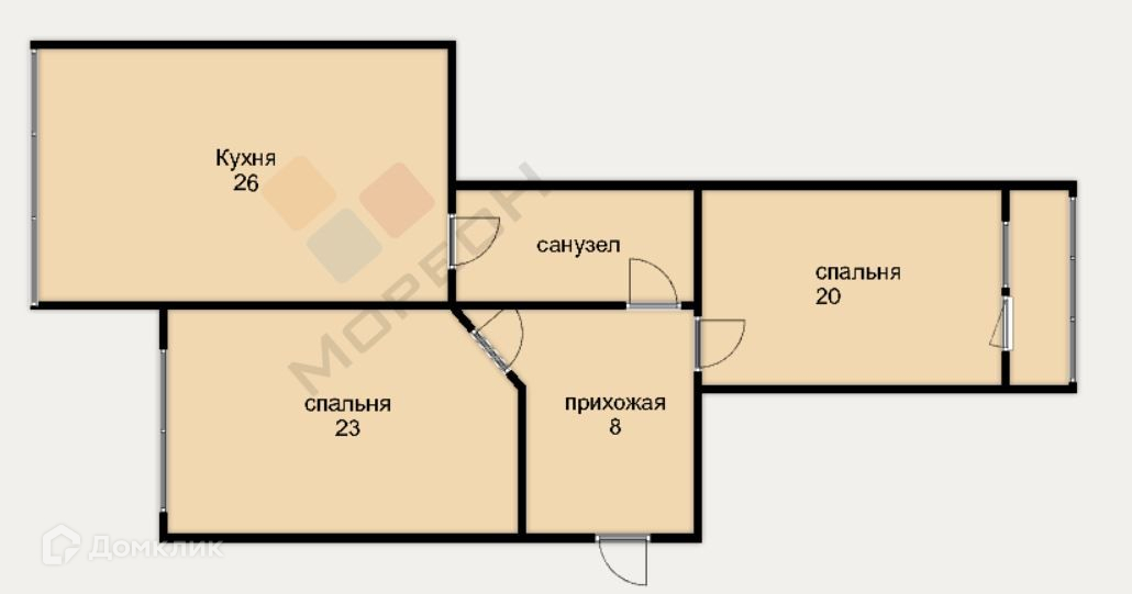 Балкон, лоджия 1 балкон