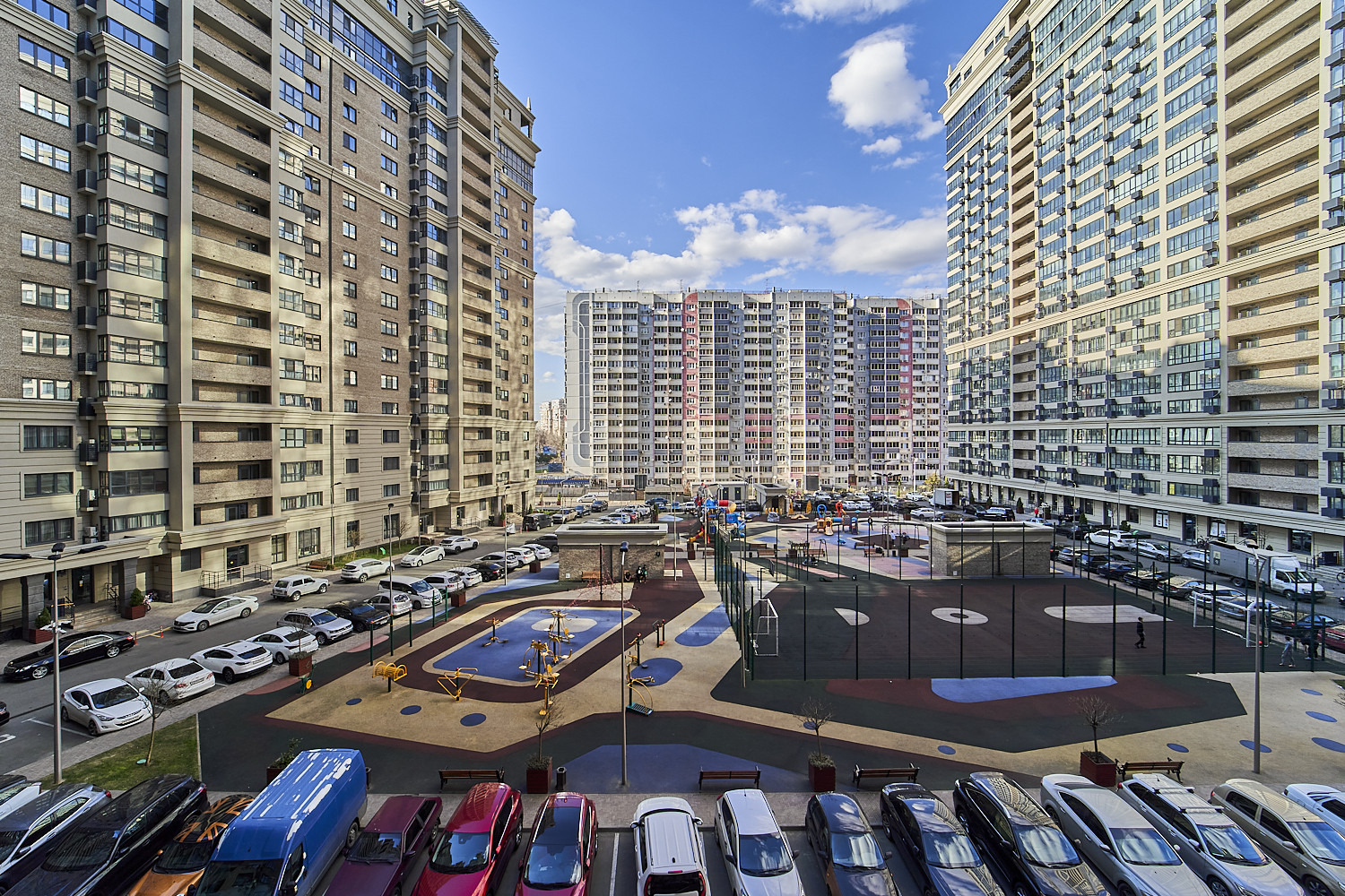 На территории ЖК есть все необходимое для комфортного проживания, территория комплекса закрытая, ландшафтный дизайн, охрана, консьержи, парковка подземная и наземная, детский сад на территории комплекса, закрытая детская и спортивная площадка. Развитая инфраструктура: у дома прогулочные зоны, фонтаны, магазины, рестораны, кафе, кофейни, торговые центры, супермаркеты, рынок, аптеки, становки общественного транспорта, троллейбус.