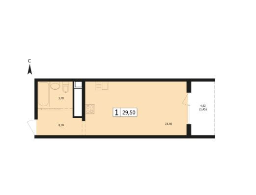 Общая площадь 29.5 м2