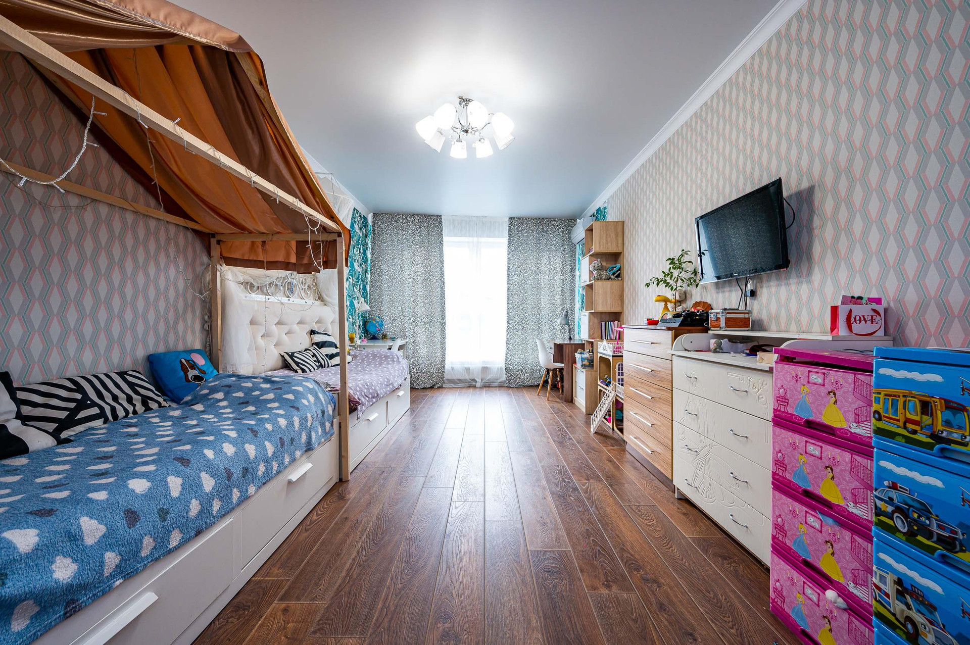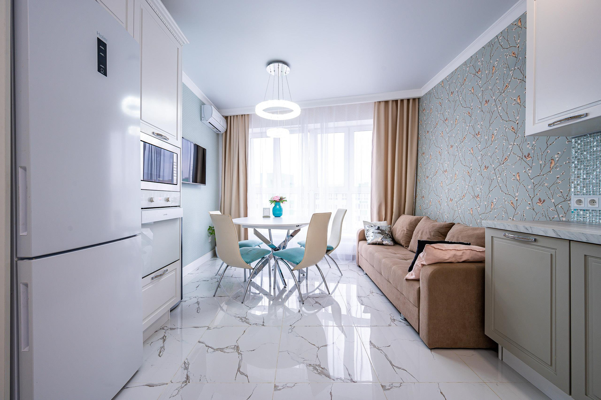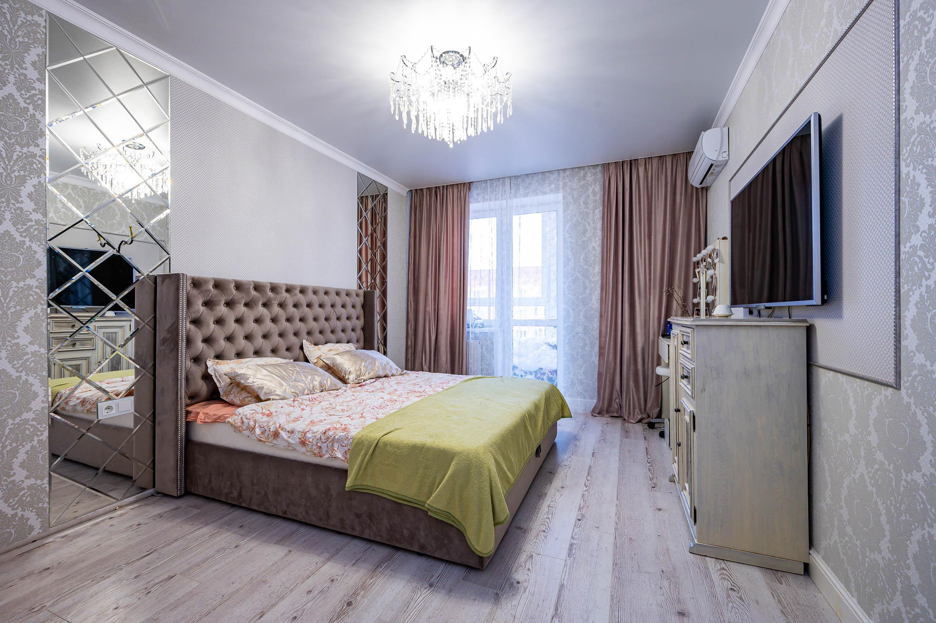 В квартире выполнен дизайнерский ремонт с использованием качественных и дорогих материалов. Большая кухня-гостиная с панорамным остеклением и шикарным видовыми характеристиками. Просторная детская комната с французским остеклением. Родительская спальня с выходом на балкон, видом на зеленую зону ЖК" Панорама". Видовой 17 этаж.