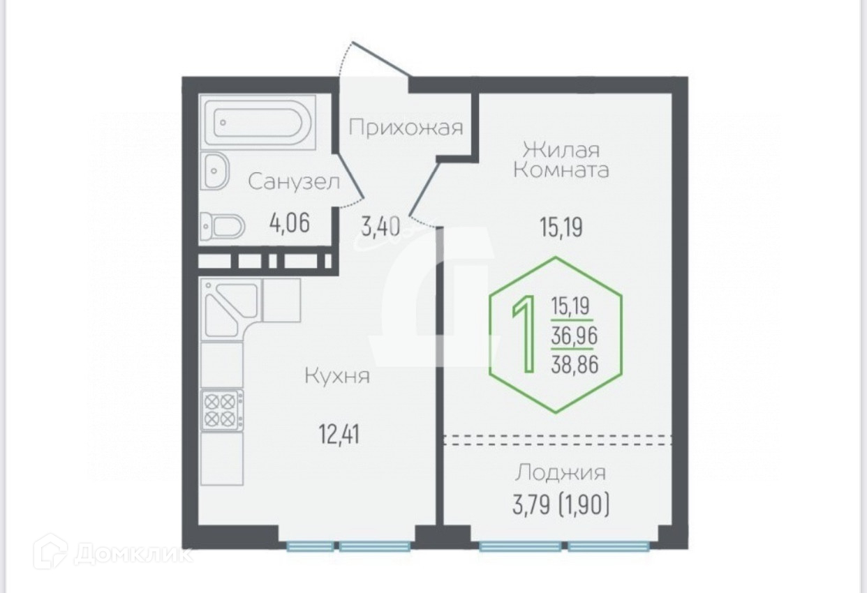 Площадь кухни 12.41 м2