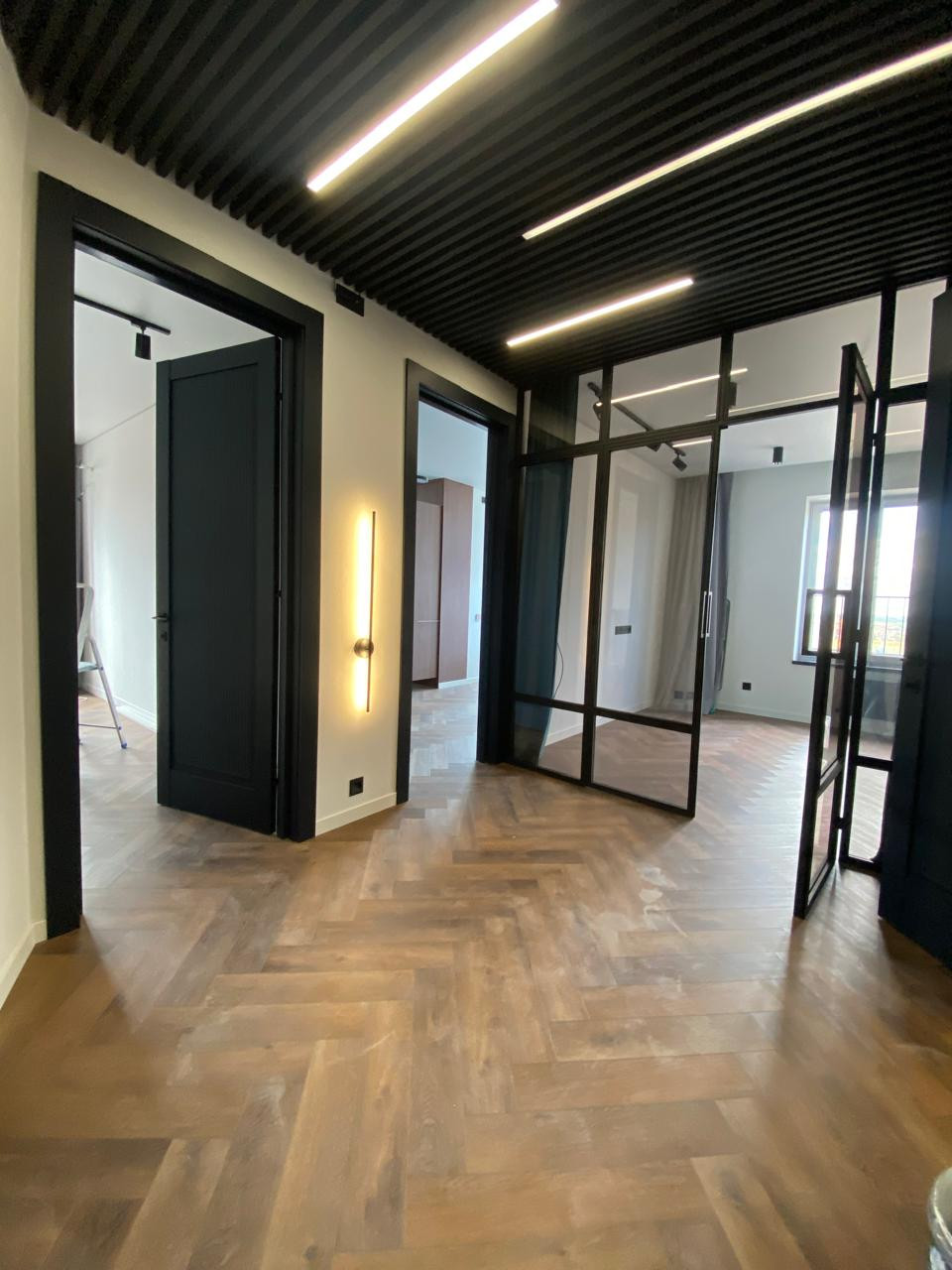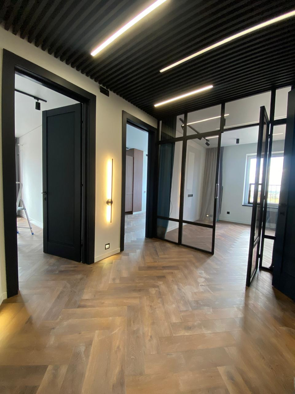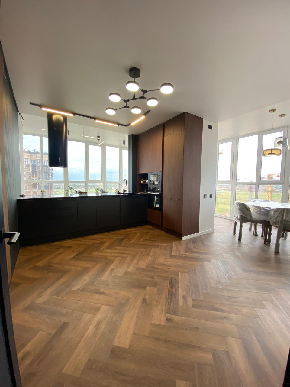 В квартире дизайнерский ремонт из дорогих материалов. Встроенная техника на кухне, холодильник., посудомойка СВЧ , мебель сделана на заказ . Краны с датчиками, подсветка с датчиками движения в коридоре и ванной, потолочная акустическая система по всей квартире, видеофон вход в подъезд и квартиру.   Электро карнизы, пол с подогревом, дизайнерские радиаторы отопления, подоконники и столешница из камня. Панорамное остекление с тонированным стеклом.