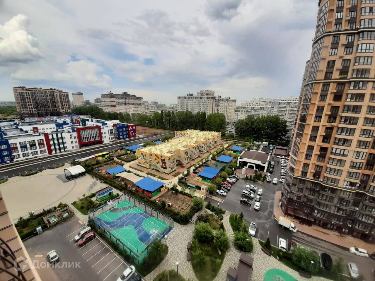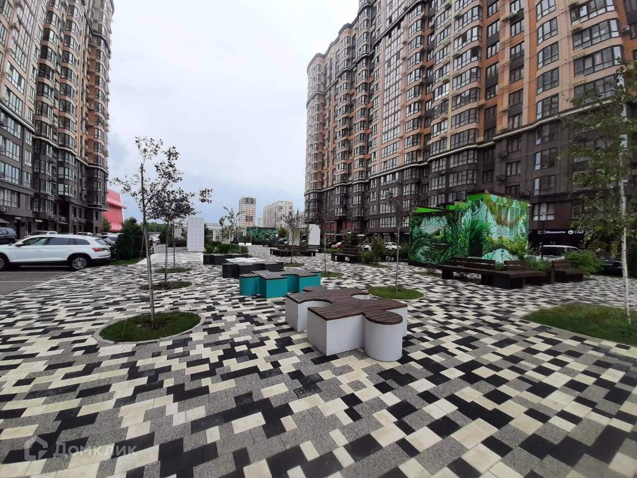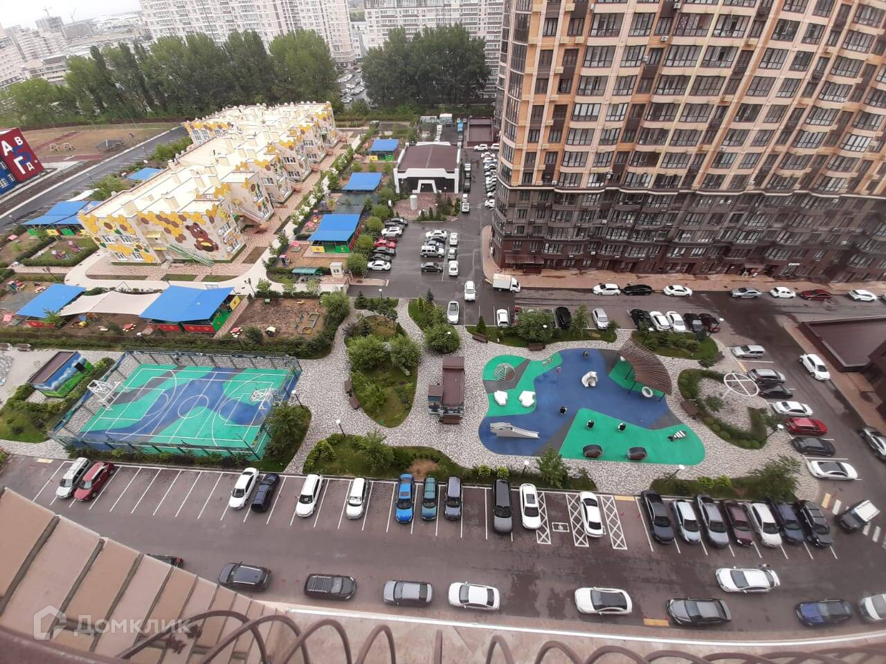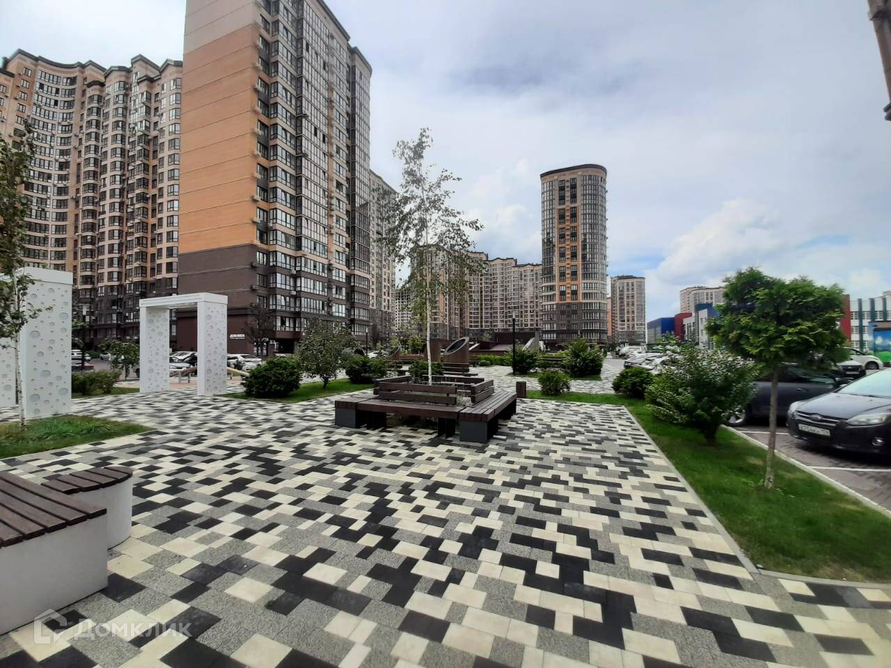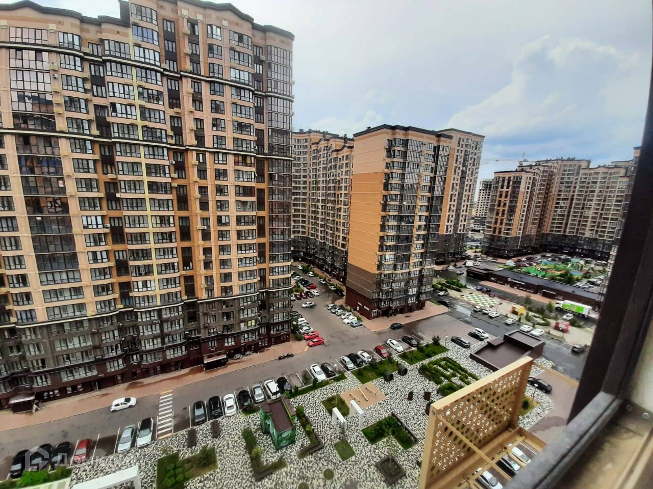 Хорошая придомовая территория с прогулочными зонами, детскими площадками, автопарковками.