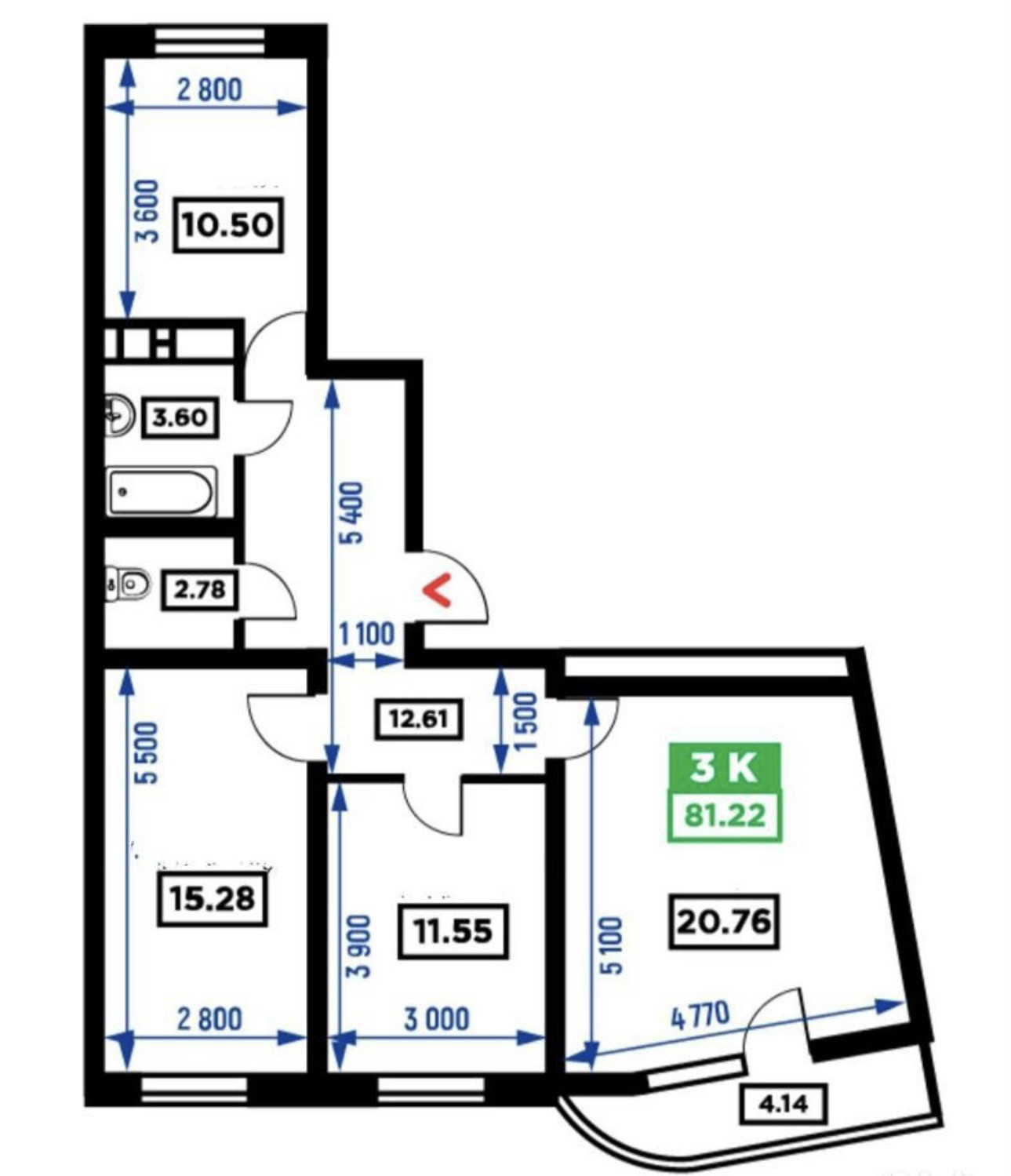 Общая площадь 80.9 м2