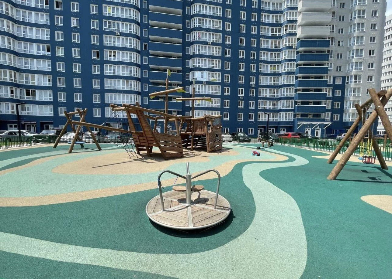 Квартира с новым ремонтом, всей необходимой мебелью и техникой. Во дворе детские площадки, строится два  детских сада . Запланировано строительство школы на 1500 мест, сдача в 2025. Ведутся работы по установке забора, для закрытия территории, устанавливается автоматическая система полива. Установлены ip домофон, доп. камер и постов охраны.