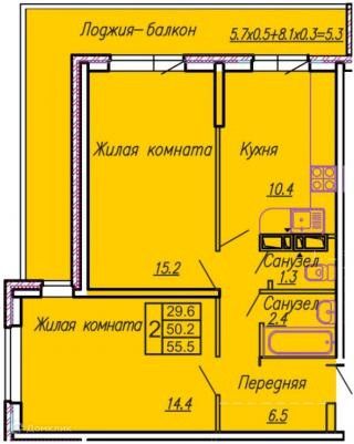 Общая площадь 55 м2