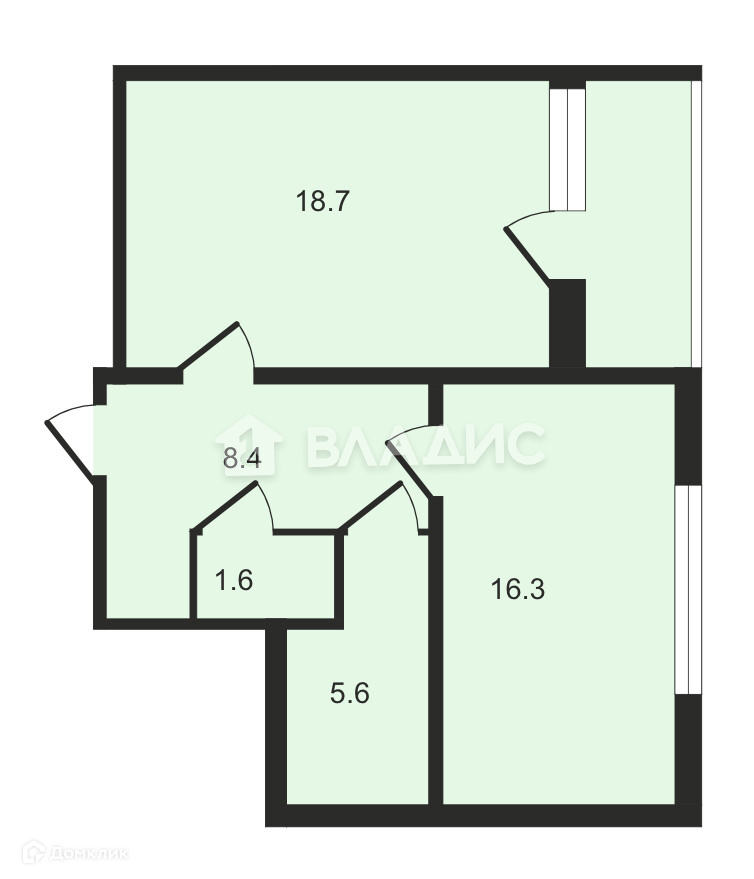 Жилая площадь 18.7 м2