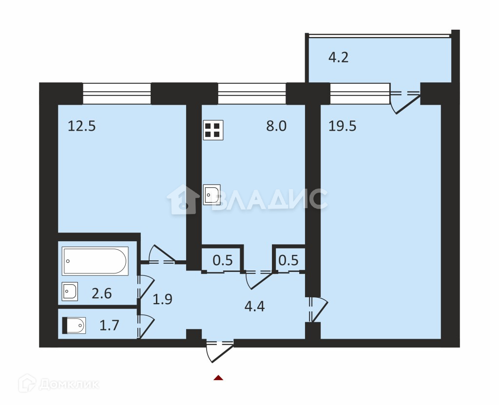 Общая площадь 52.5 м2