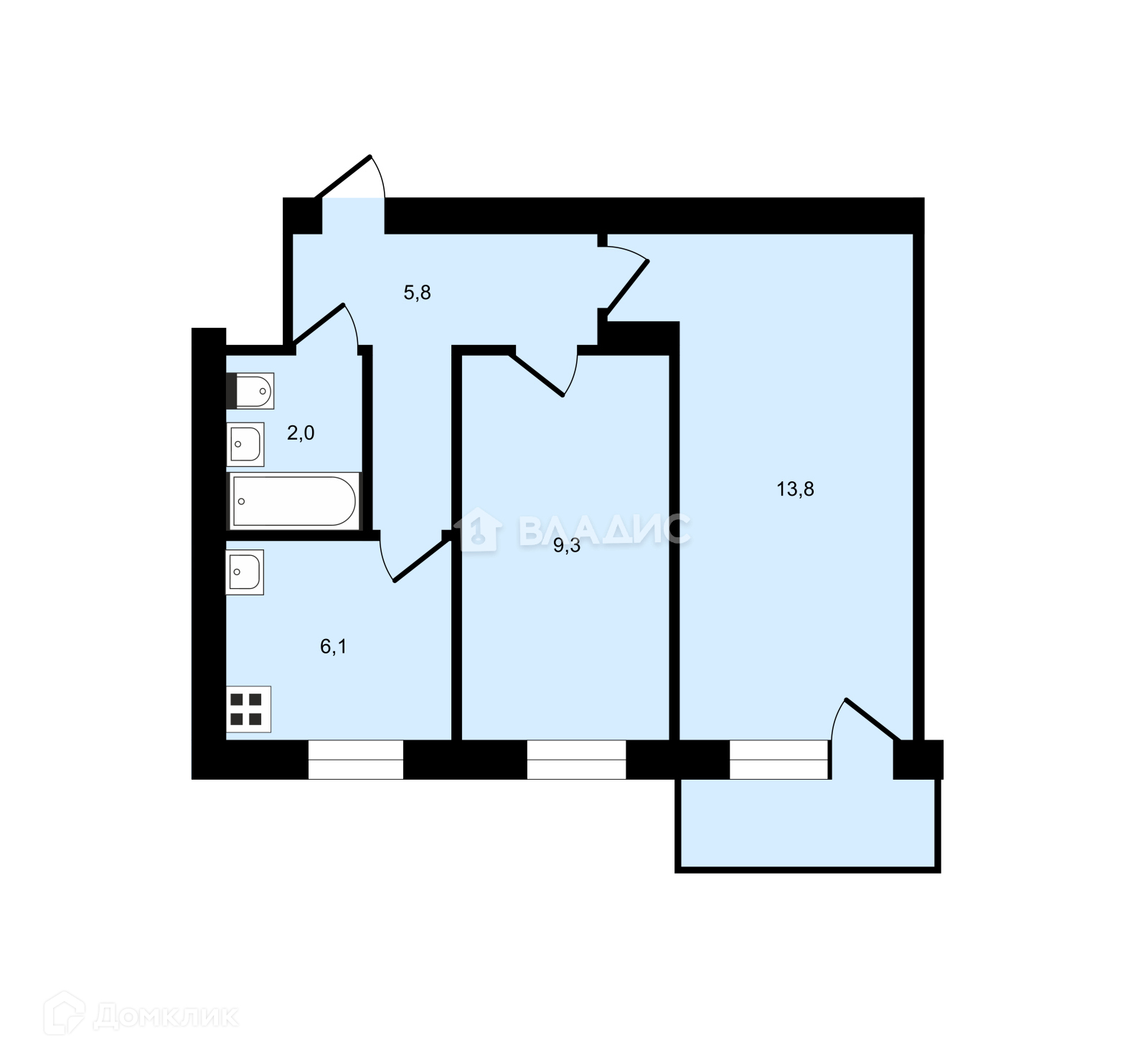 Общая площадь 43 м2