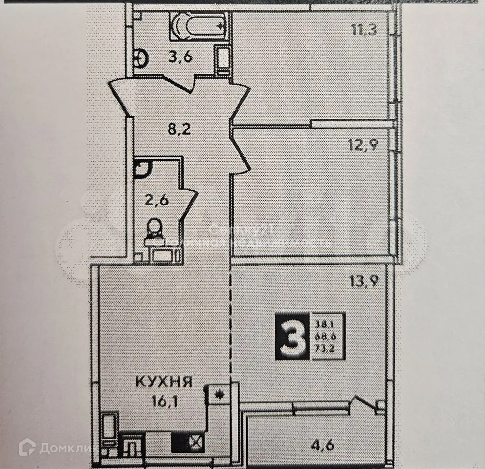 Арт. 70862578 Продается 3к квартира в новом ЖК Самолет-3. Квартира современной планировки - 2 комнатная 73 кв.м. с большой гостиной - 13.9 кв.м., изолированными комнатами - 11,3; 12,9 кв.м. и отдельной кухней - 16,1 кв.м. с панорамным окном.