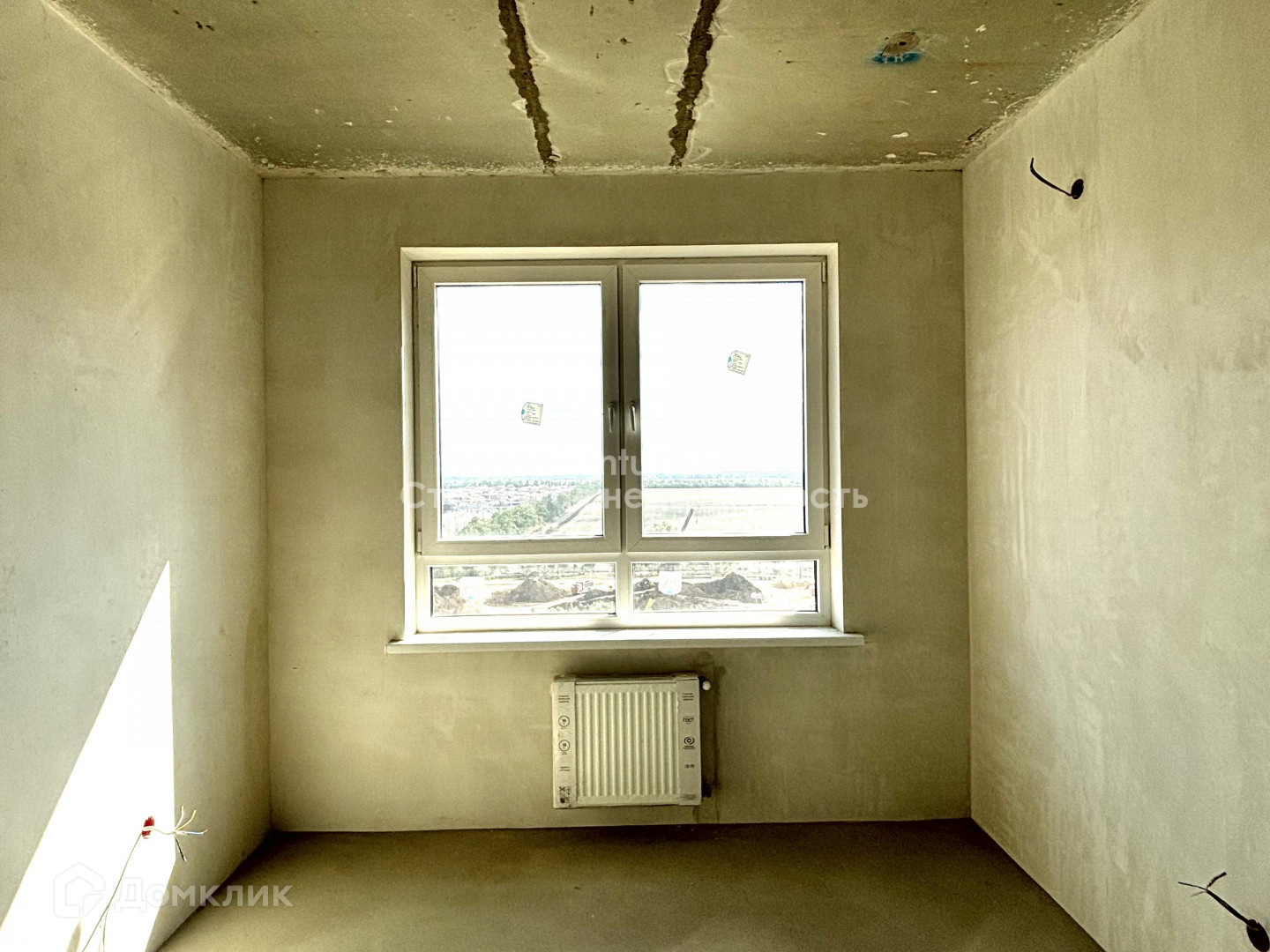 Окна пластиковые стеклопакеты, сделана стяжка пола, отштукатурены и выровнены стены, разведена проводка, установлен щиток, установлены радиаторы отопления. Санузел совмещенный.