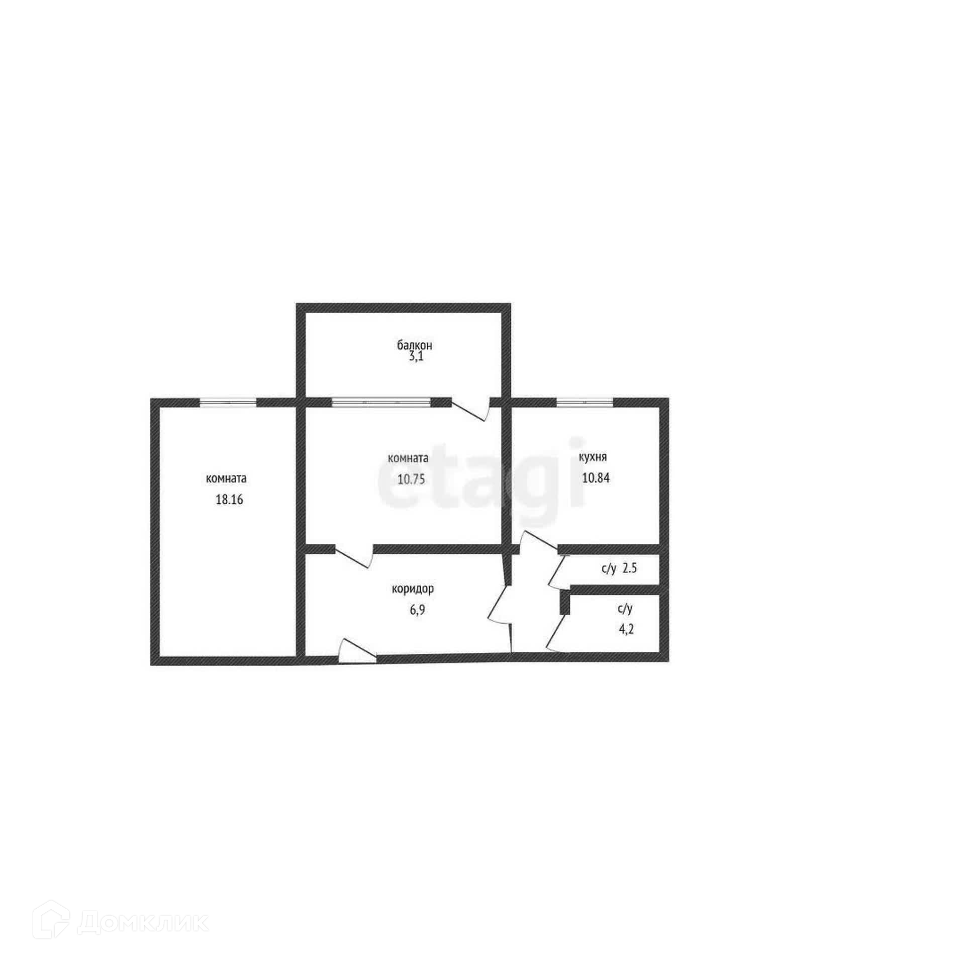 Общая площадь 54.6 м2