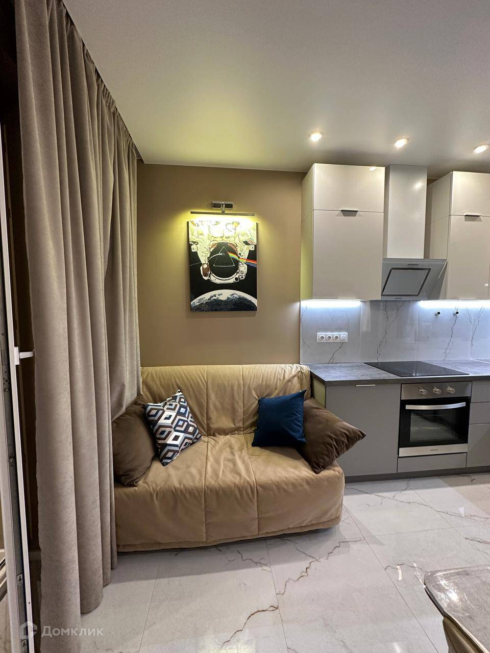 Очень теплая квартира с просторными спальней и кухней. Дизайнерский ремонт.