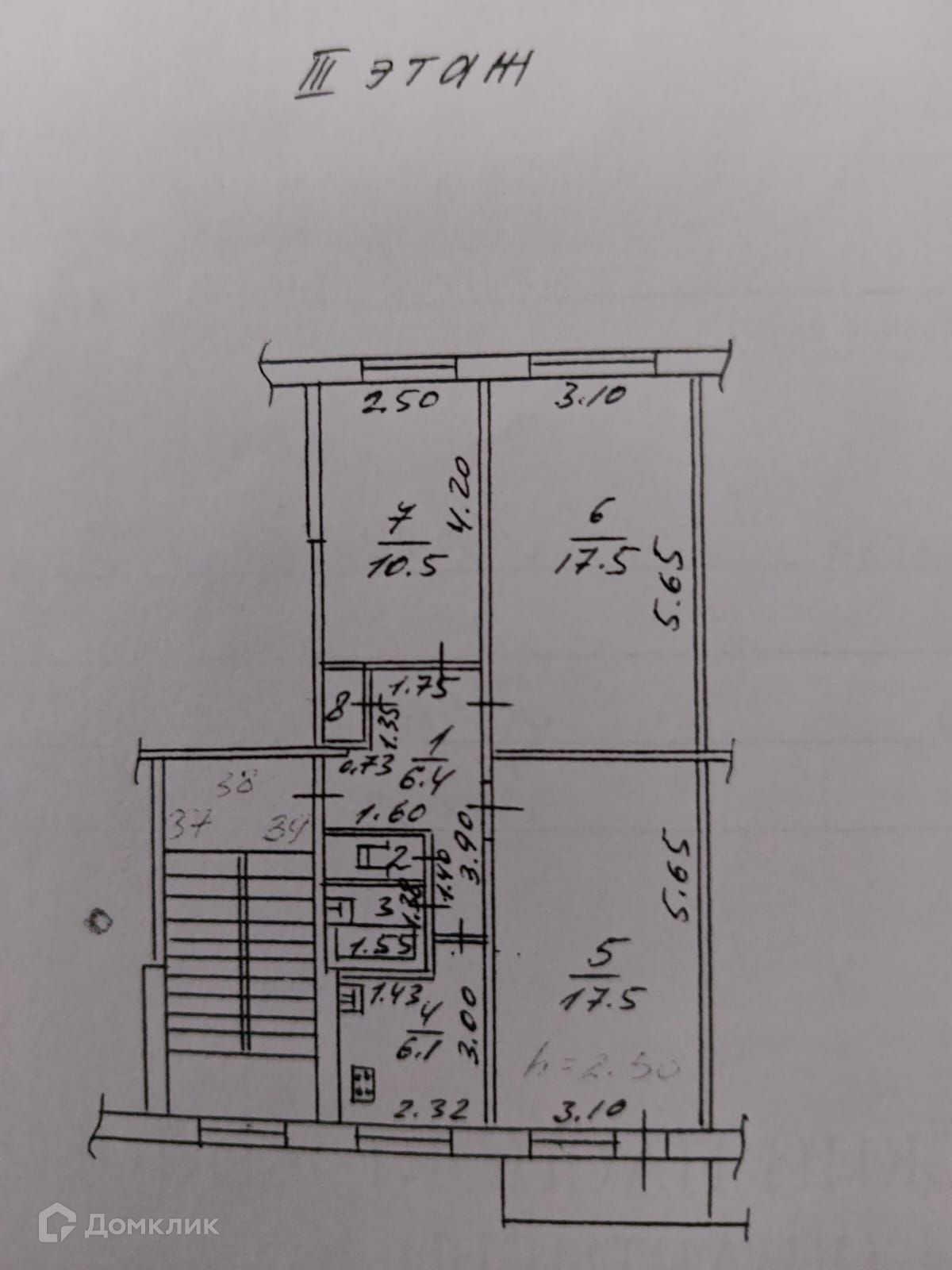 Высота потолков 2.8 м