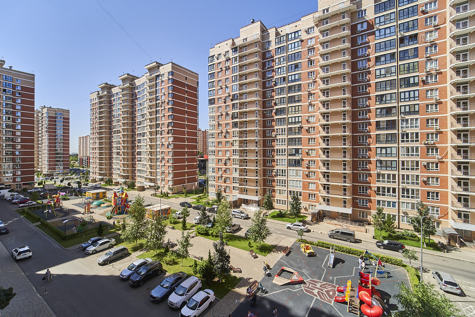 На территории комплекса различные магазины, супермаркет "Апельсин",  Аптеки, безопасные детские, игровые площадки, многоуровневая парковка и  зеленая аллея для прогулок!