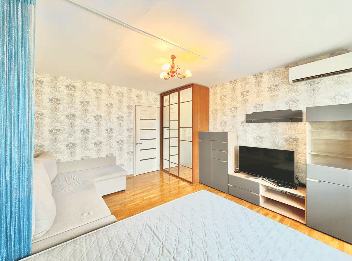 В квартире сделан евроремонт, поэтому можно сразу заехать и жить. В жилых комнатах и на кухне установлена современная мебель. Санузел раздельный, отделан качественными материалами. Преимущество квартиры - просторная лоджия 7,4 кв.м, где можно устроить зону отдыха или хранить вещи.