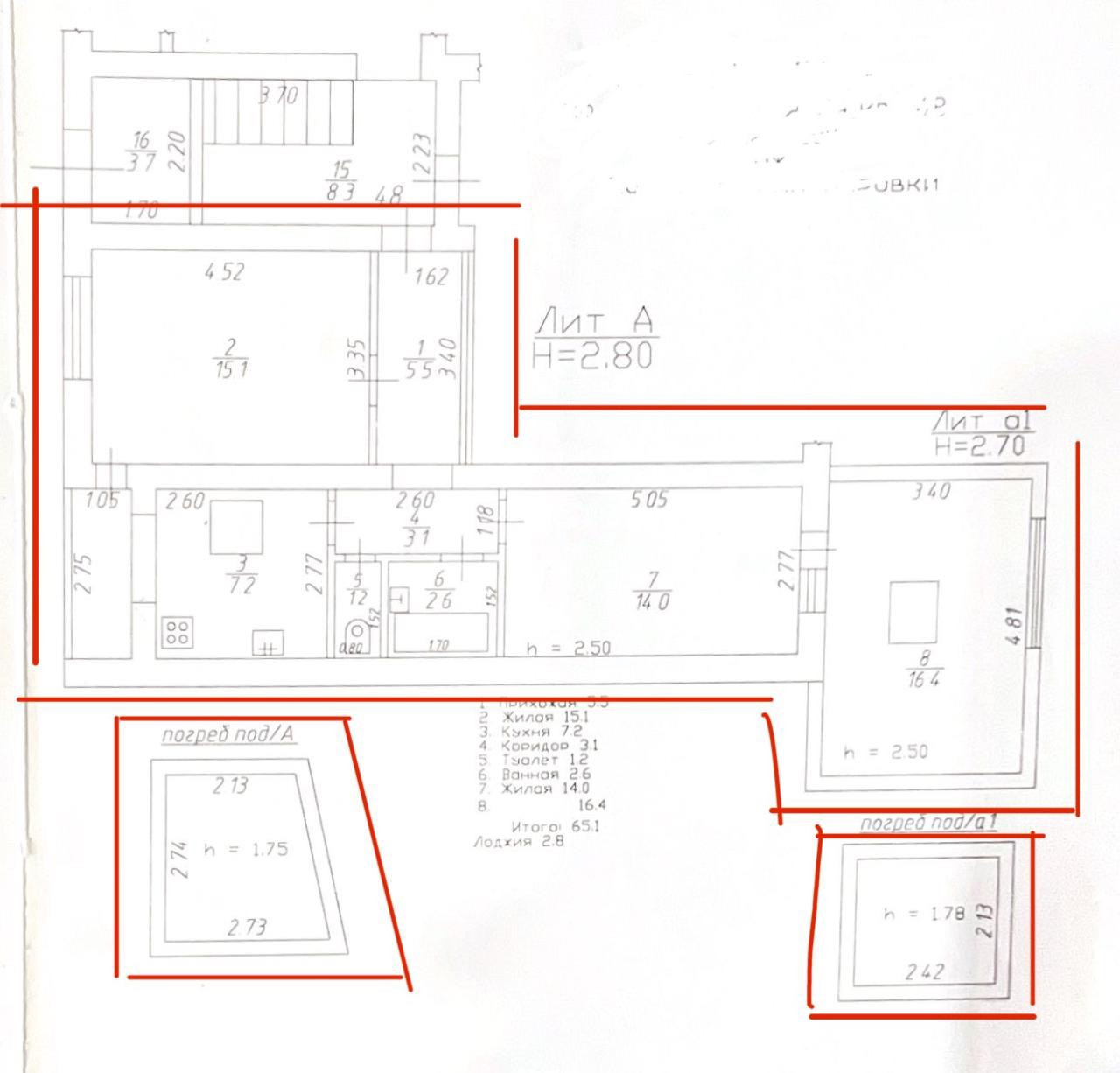 Общая площадь 65.1 м2