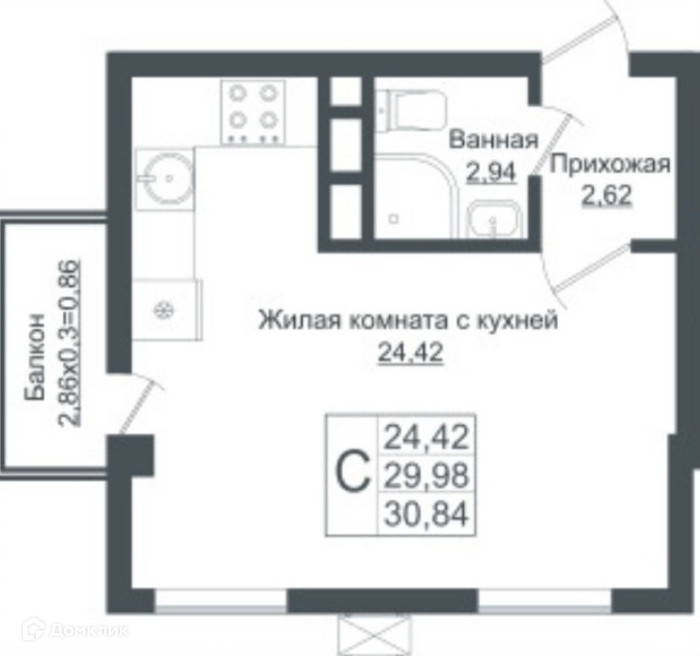 Общая площадь 30 м2