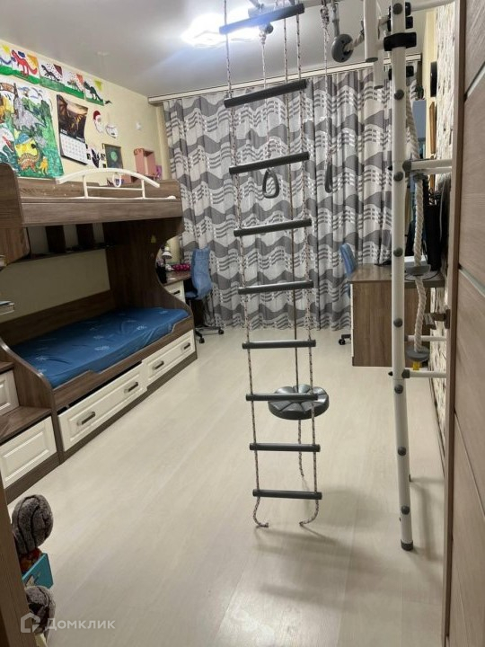 На лоджии установлен теплый пол, раздельный санузел, входная дверь заменена. В коридоре ламинат заменён на плитку и установлен шкаф-купе. В детской находится 2х ярусная кровать , 2 стола и большой шкаф.