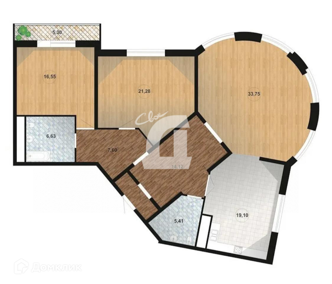 - общая площадь 130 кв.м, жилая — 71,6 кв.м, кухня 19,1 кв.м, комнаты 16,6 кв.м, 21,3 кв.м, 33,7 кв.м