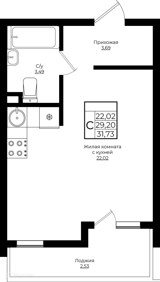 Общая площадь 31.73 м2