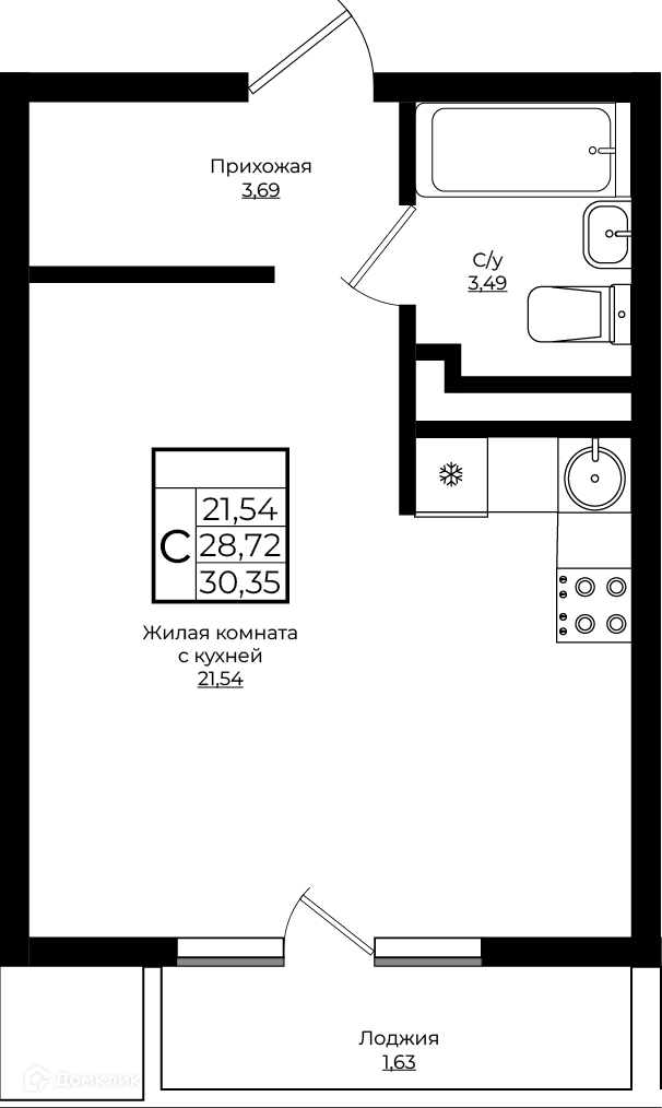 Общая площадь 30.35 м2