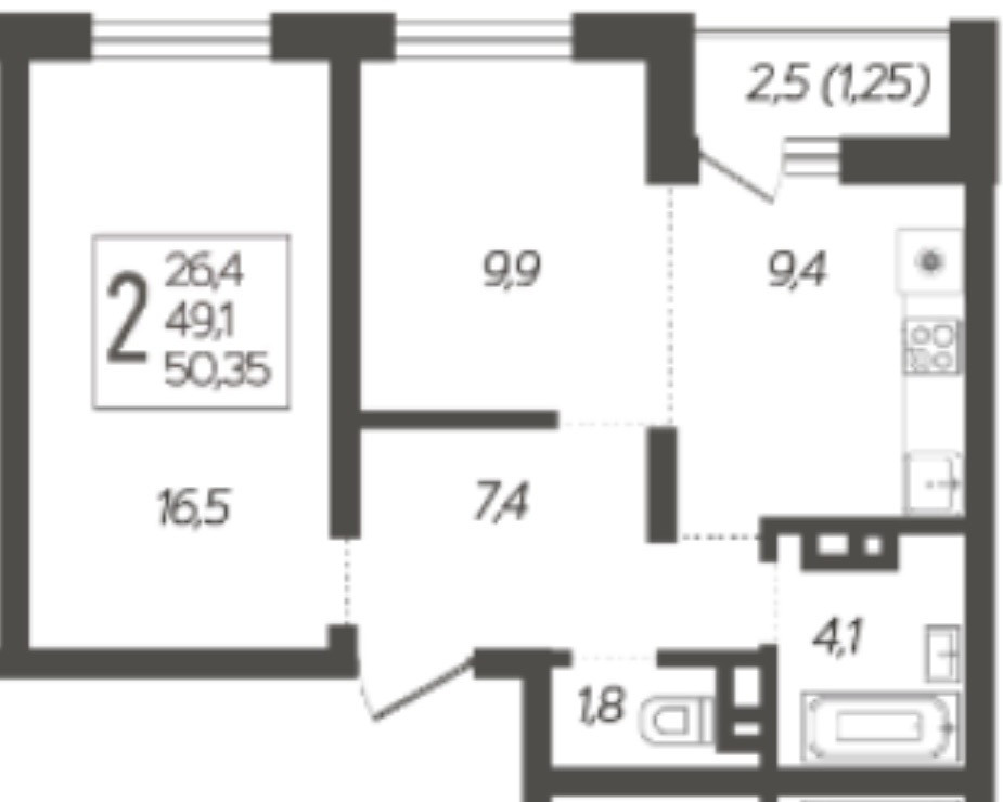 Количество комнат 2