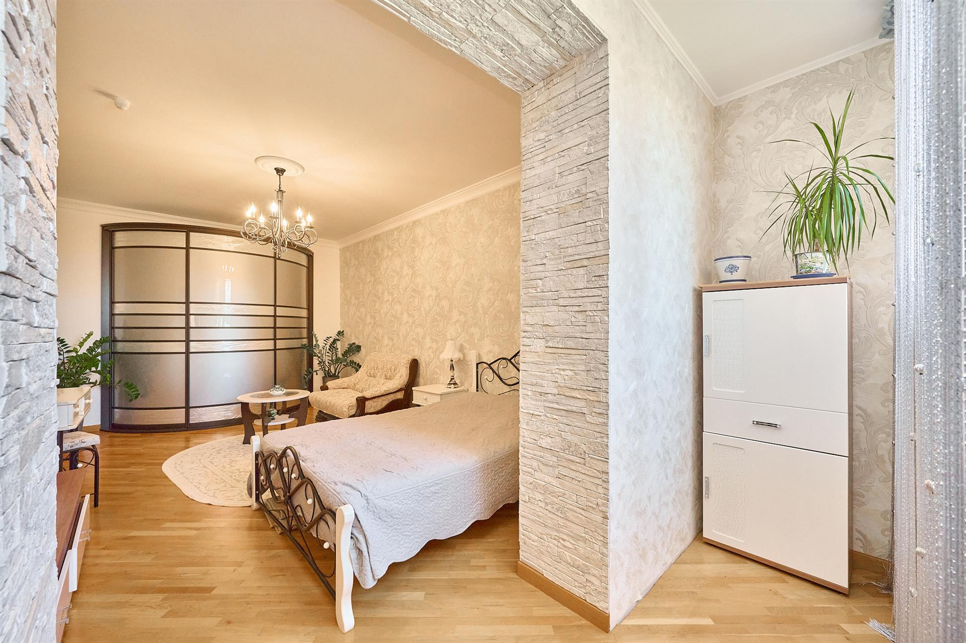 Квартира уютная и теплая, с удобной планировкой с гардеробной. Видовая, находится на 12 этаже.   Ремонт делали для себя и со вкусом, с использованием качественных материалов (тщательно подобраны материалы и оттенки), мебель и техника- новые! Просторные комнаты и кухня, раздельный санузел, 2 балкона, кладовка, 3 сплит-системы. Установлен камин в квартире, который согреет вас в холодную зиму и создаст уютную атмосферу в вашем доме. Из окон квартиры вид на реку.