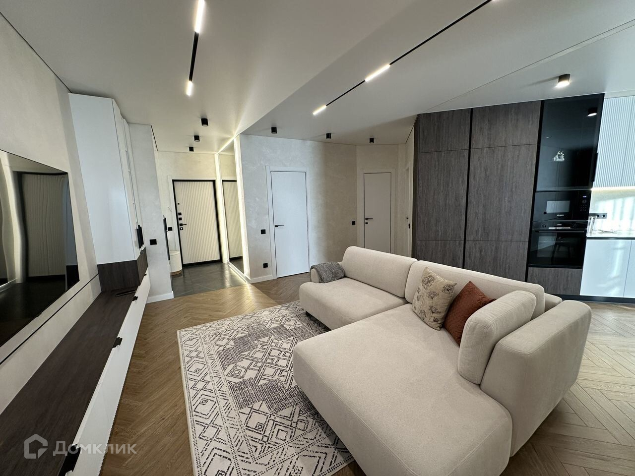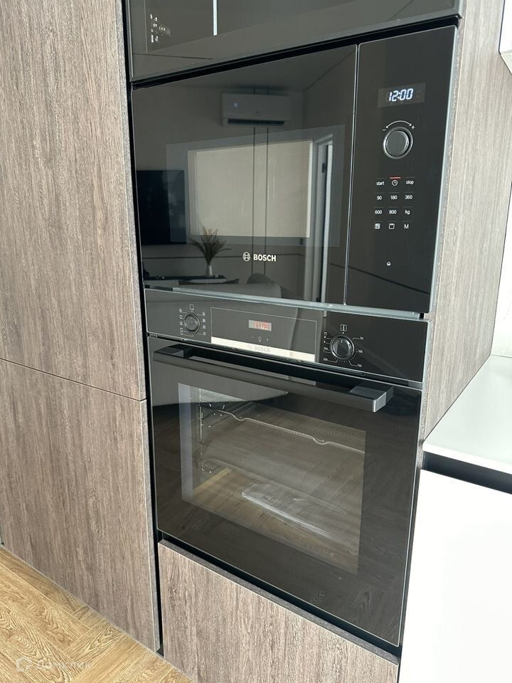 Все двери, шкафы-4 шт мдф эмаль. Большая кухня с гарнитуром сделанным на заказ - мдф эмаль. Встроенная техника (микр печь, духовой шкаф, варочная поверхность индукция - Sаmsung , посудомоечная машина на 60 см, вытяжка) Входная дверь заменена.