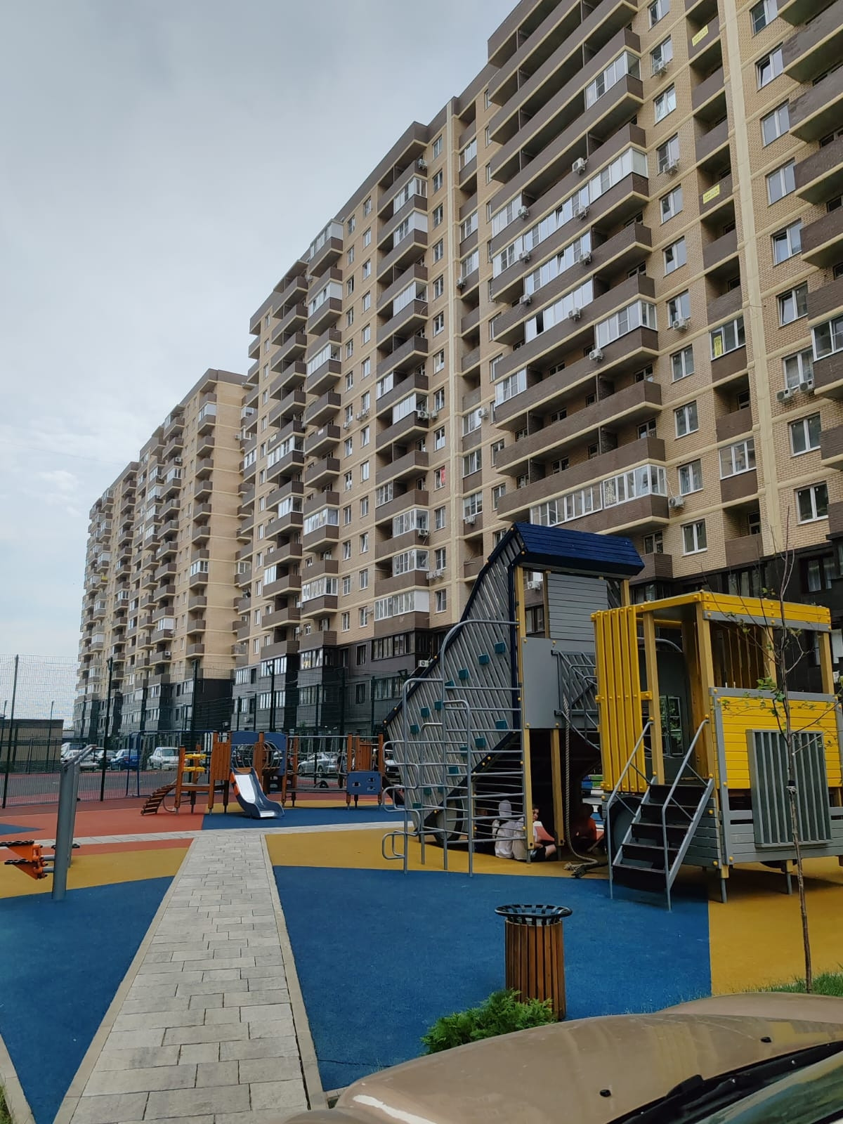 Во дворе дома находятся детская и спортивная площадки, а также парковка со шлагбаумом. Территория дома закрыта, что обеспечивает дополнительную безопасность жильцов.