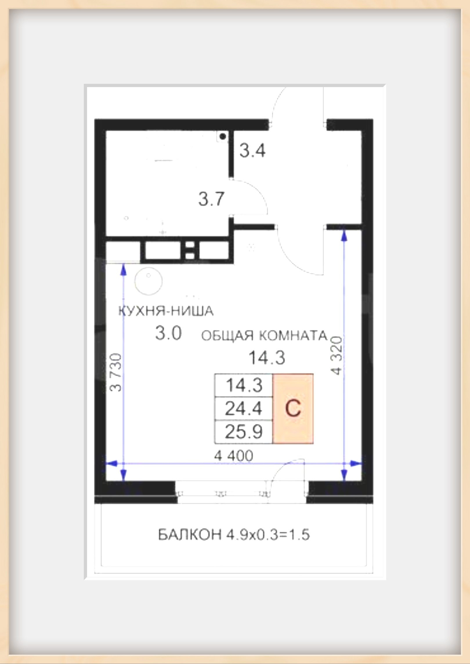 Общая площадь 25 м2